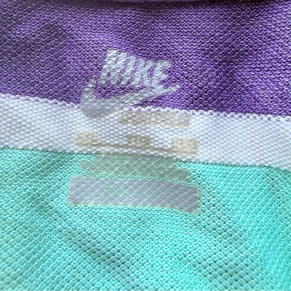 как выглядит Nike Vintage Striped Polo Shirt Purple Teal Black Short Sleeve Men