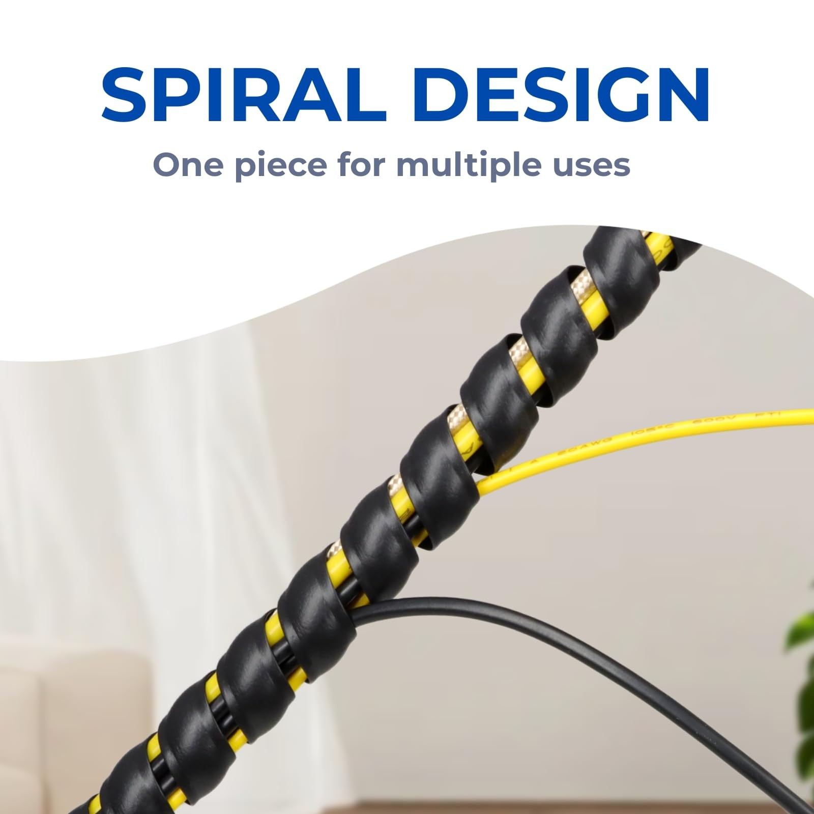 • HOLED 0.7" Spiral Cable Wrap, Plastic Wire Wrap Cord 0.7" 10ft, Black