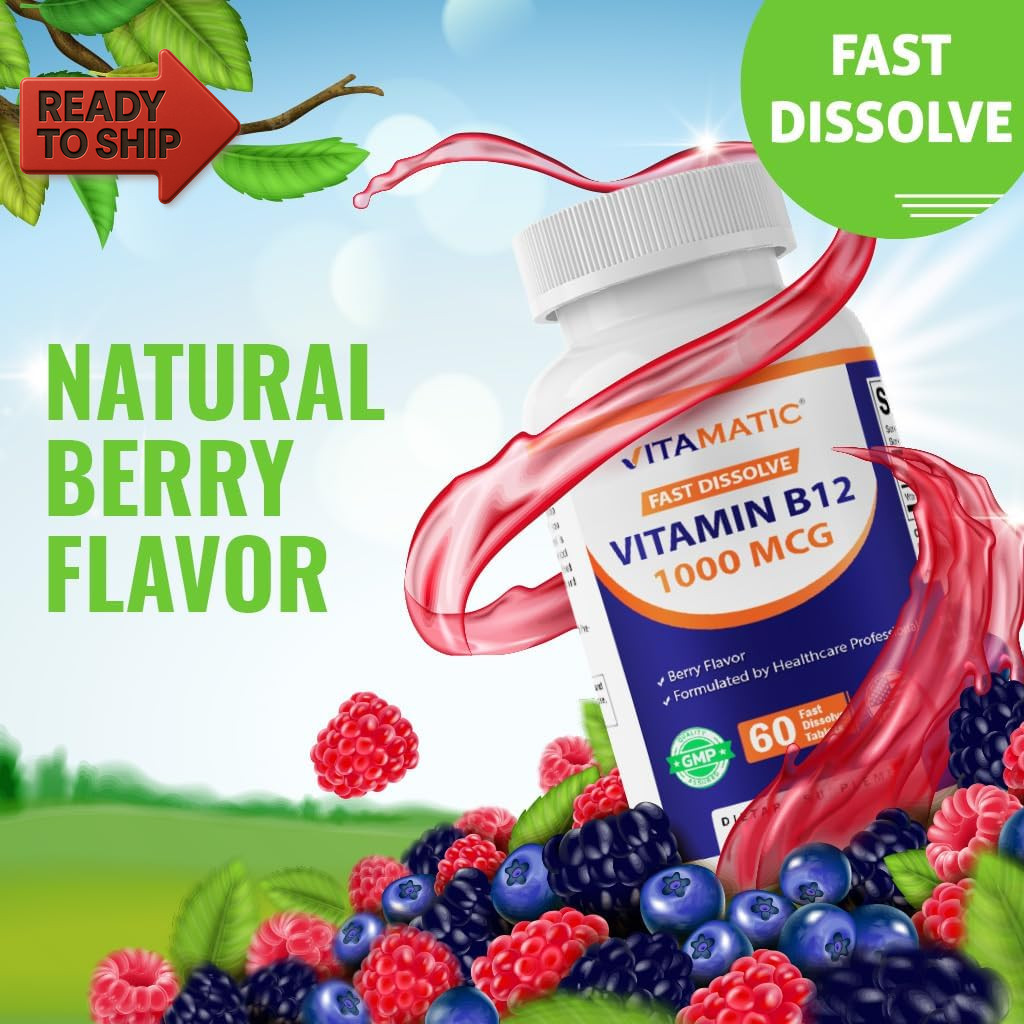 Vitamatic Vitamin B12 1000 Mcg Fast Dissolve 60 Tablets Natural Berry Flavo
