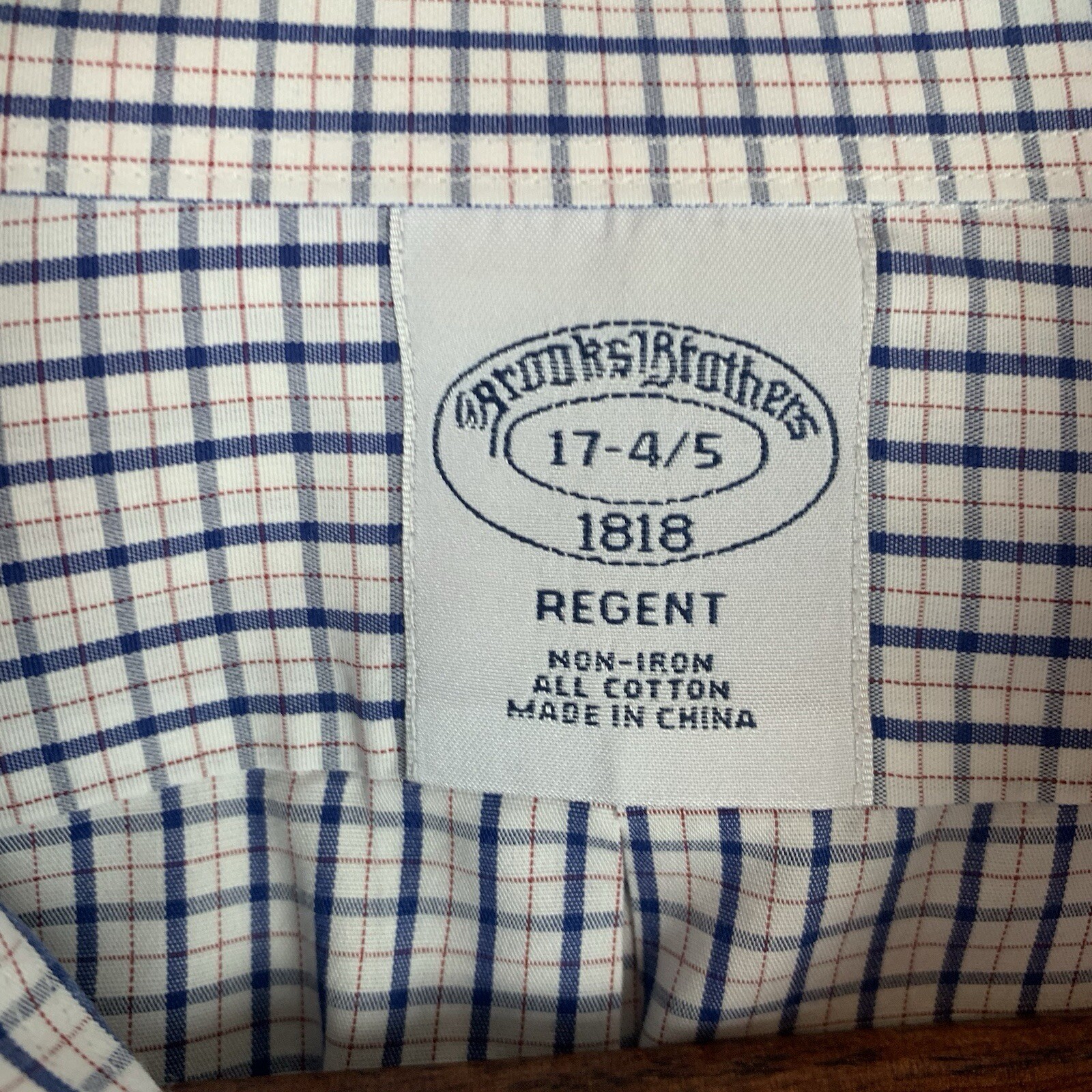 Brooks Brothers Blue Regent Shirt Size 17 - 4/5 Non Iron Cotton Plaid