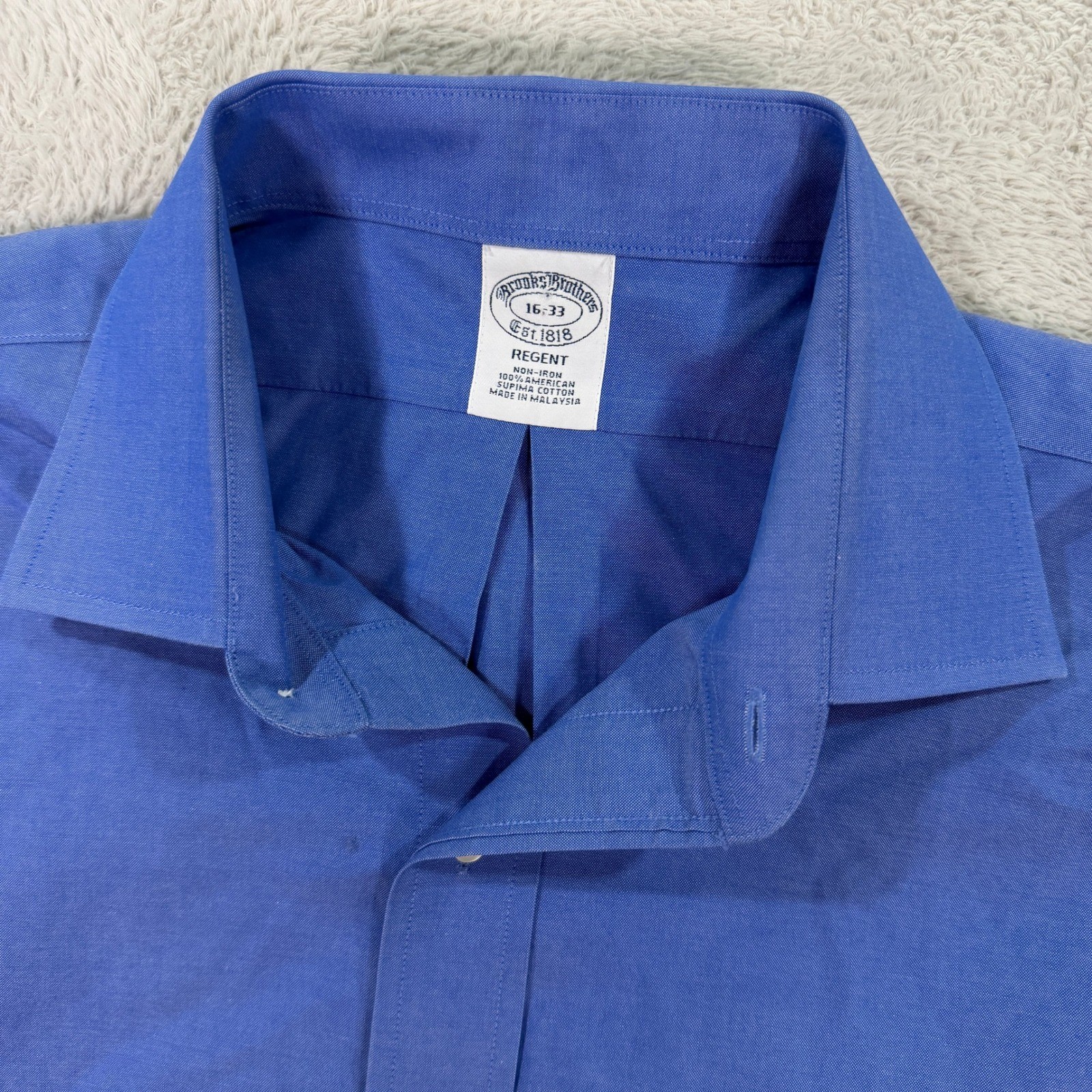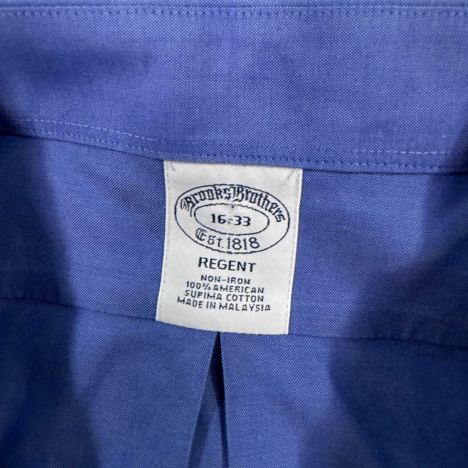 Brooks Brothers Mens 16-33 Button Down Shirt Regent Blue Supima Cotton Non-Iron