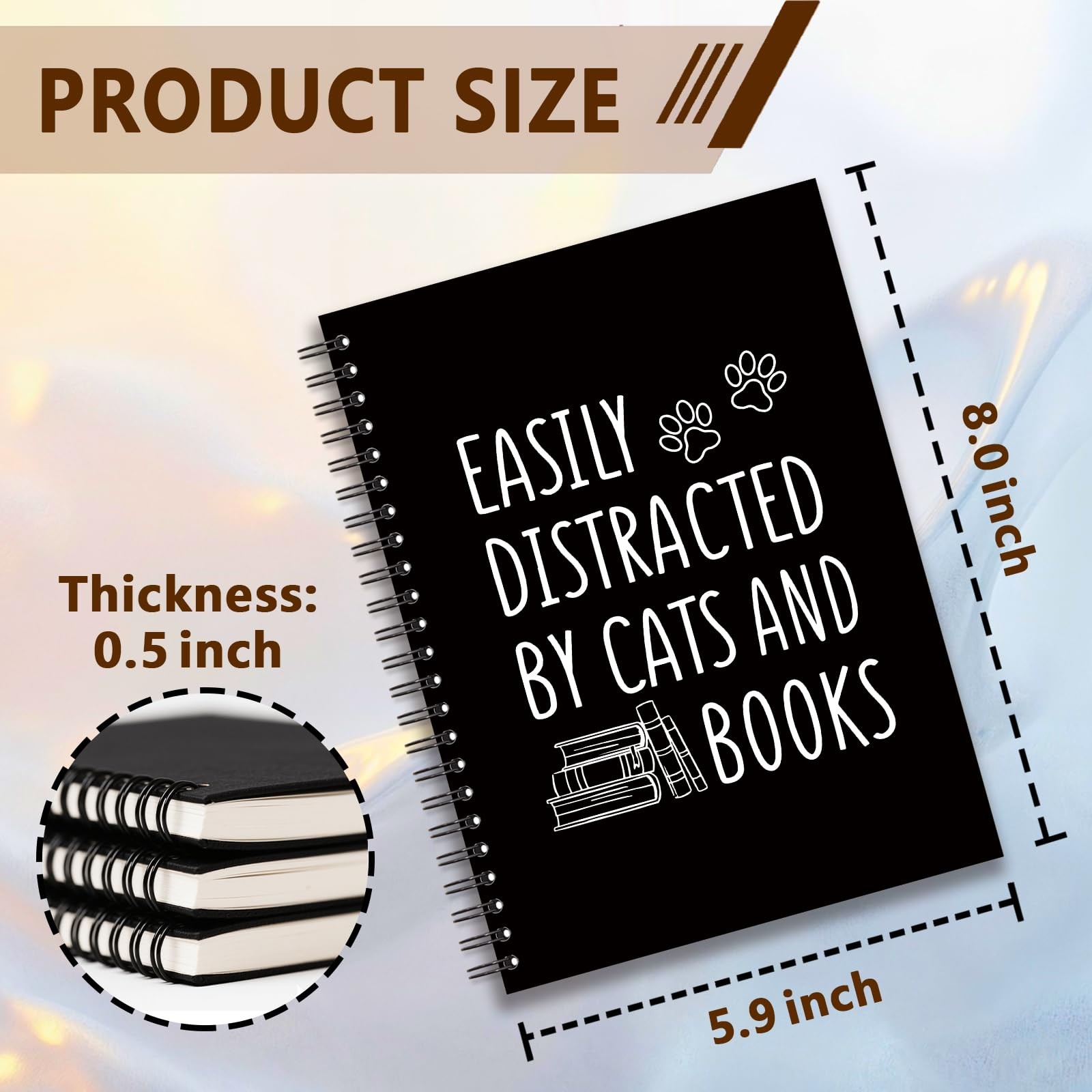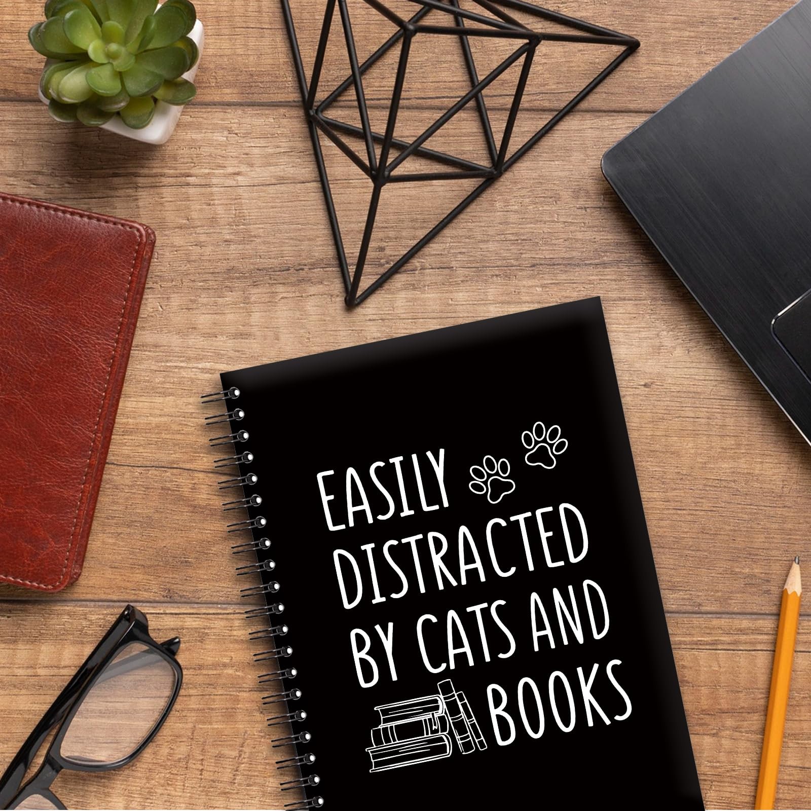 KANGYUSO Funny Cat Lover Notebook Gifts, Easily Distracted 5.9 x 8, White