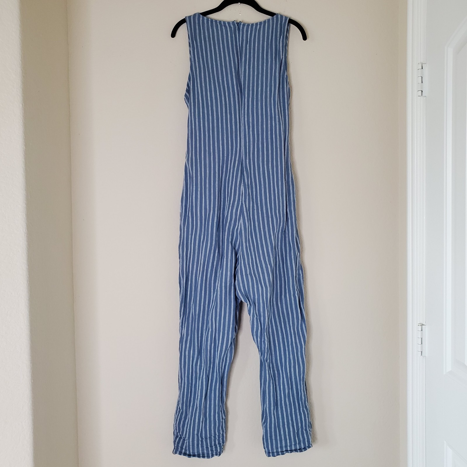 как выглядит The nines by Hatch Maternity denim chambray jumpsuit Striped Sleeveless Sz L фото