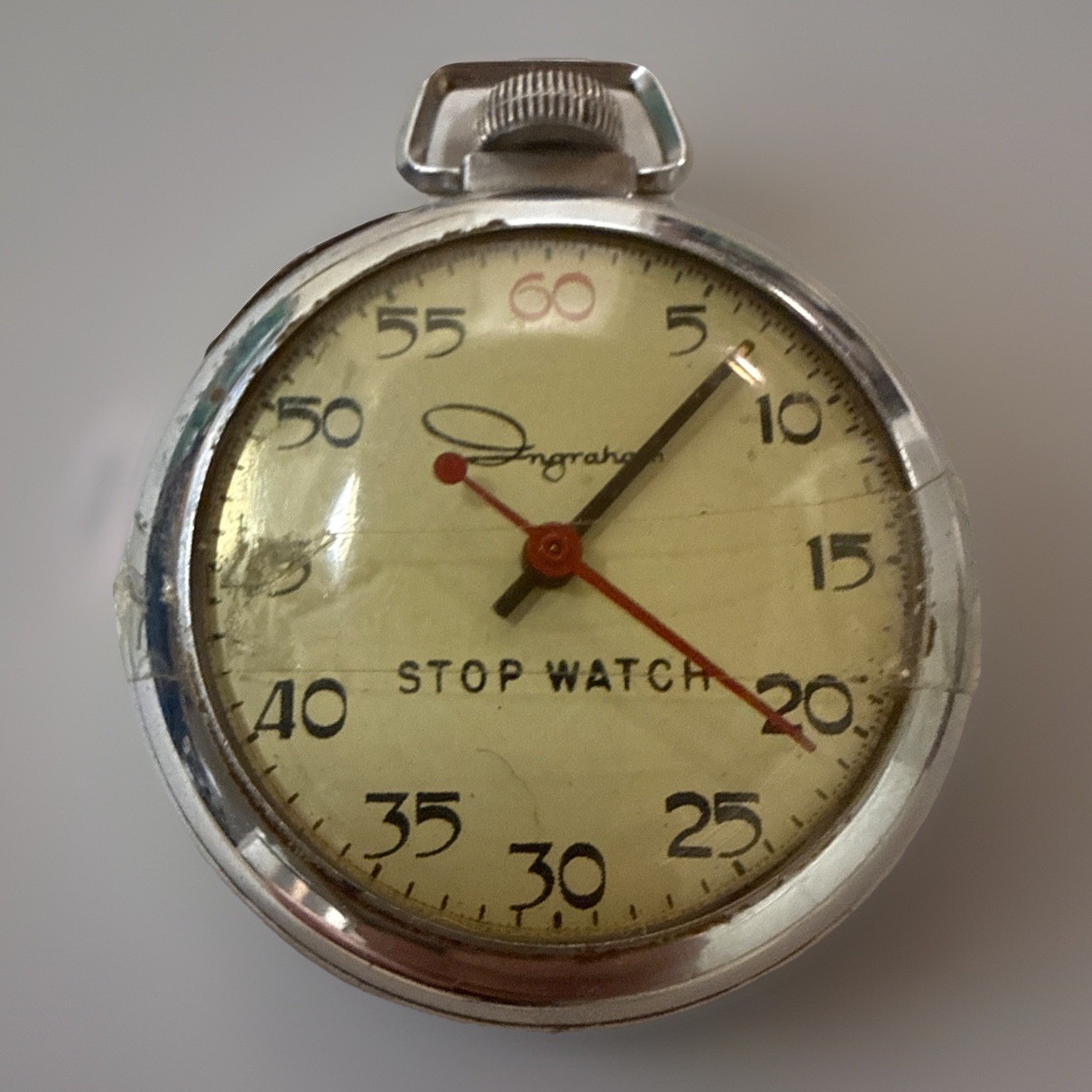 как выглядит Rare Vintage Ingraham Stop Watch Silver Tone Parts/Repair фото