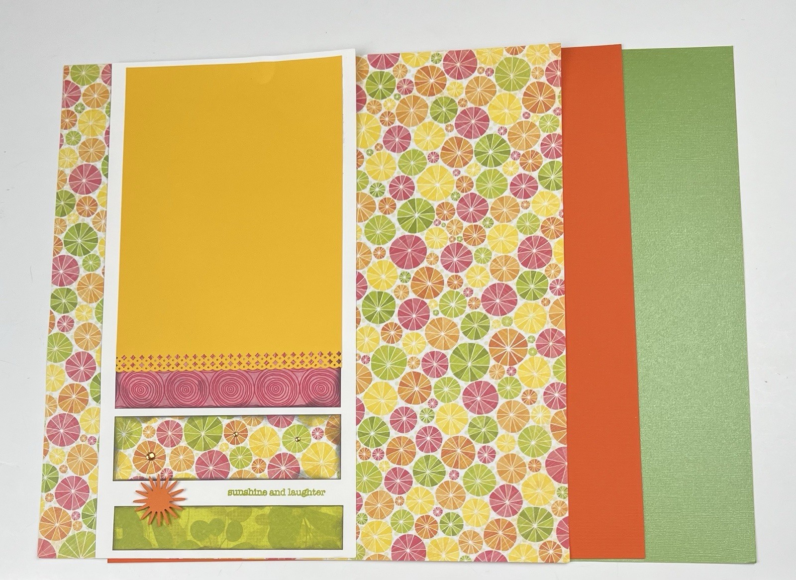 12 x 12 Scrapbook Page Kit 3 Solid Sheets 1 Print Pre-made Page Pieces Sunshine