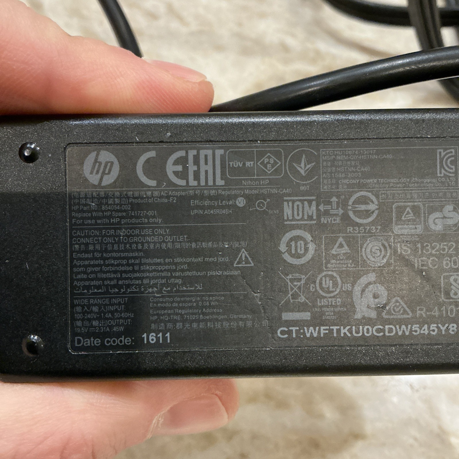 HSTNN-CA40 OEM HP AC ADAPTER 19.5V 2.31A 45W - 854054-002 - Blue Tip