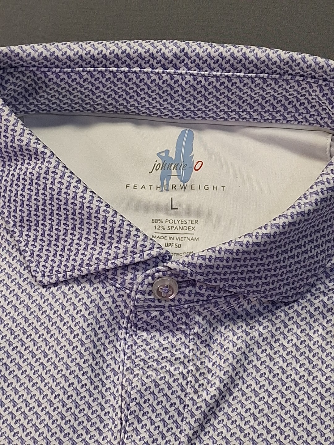 как выглядит Johnnie-O Featherweight Performance Polo Mens Large White Blue The Wingman Golf фото