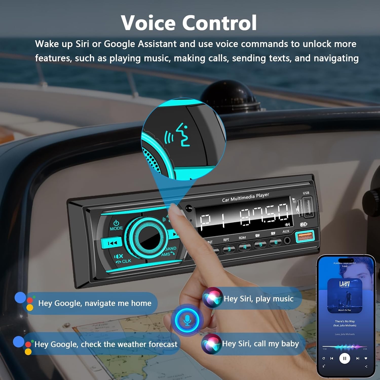 Marine Radio Single DIN Bluetooth Car Stereo, Boat Stereo Receiver Marine Head..