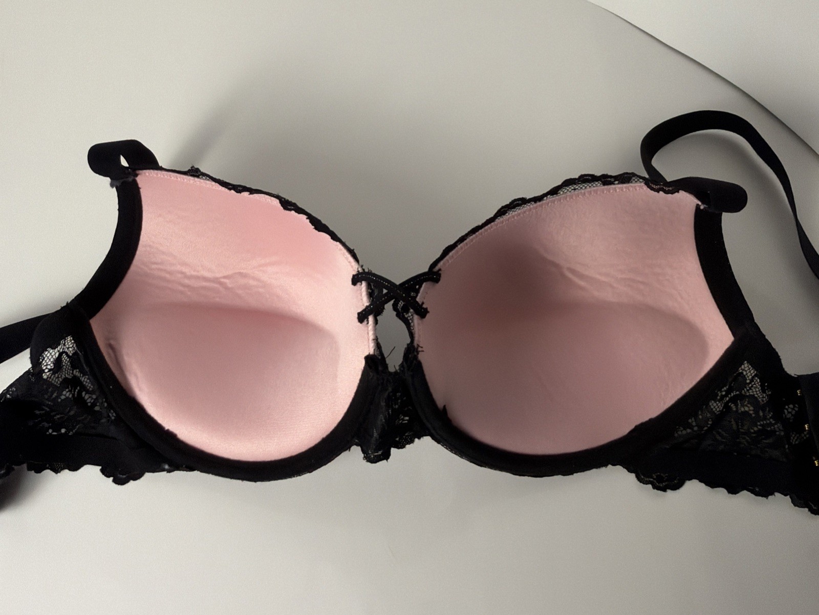 как выглядит Fredericks Of Hollywood Fame Bra Sz 42C Black Lace/Pink фото