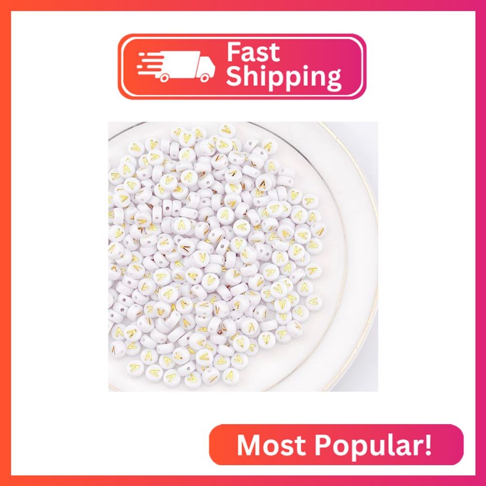 Sunrica 300Pcs Single Letter Beads V 4X7mm Individual Gold Alphabet Beads for Fr