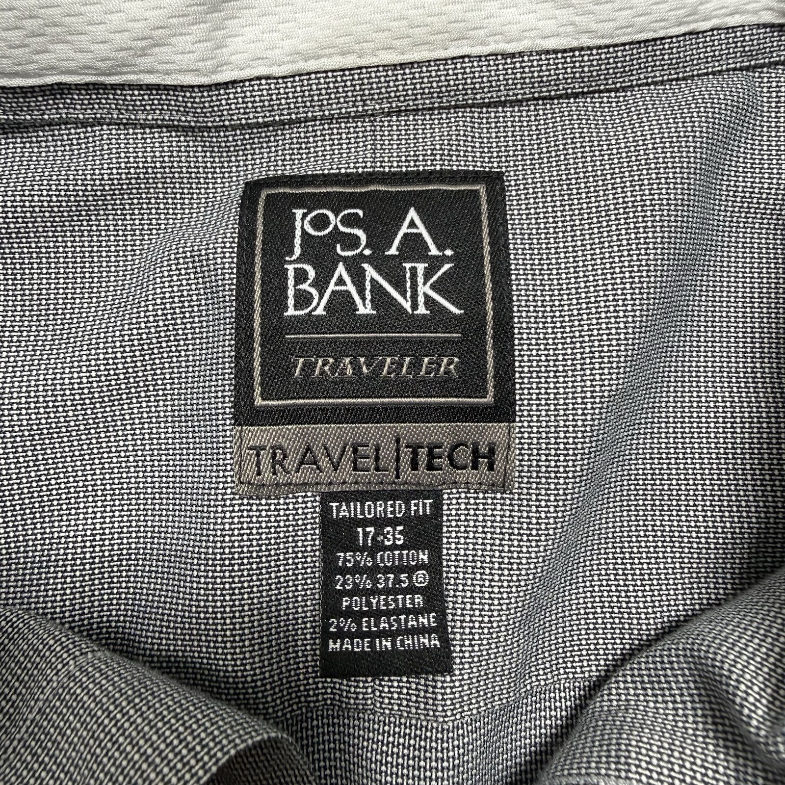 как выглядит Jos A Bank Traveler Shirt 17 33 Black Gray Travel Tech Tailored Fit Button Up фото