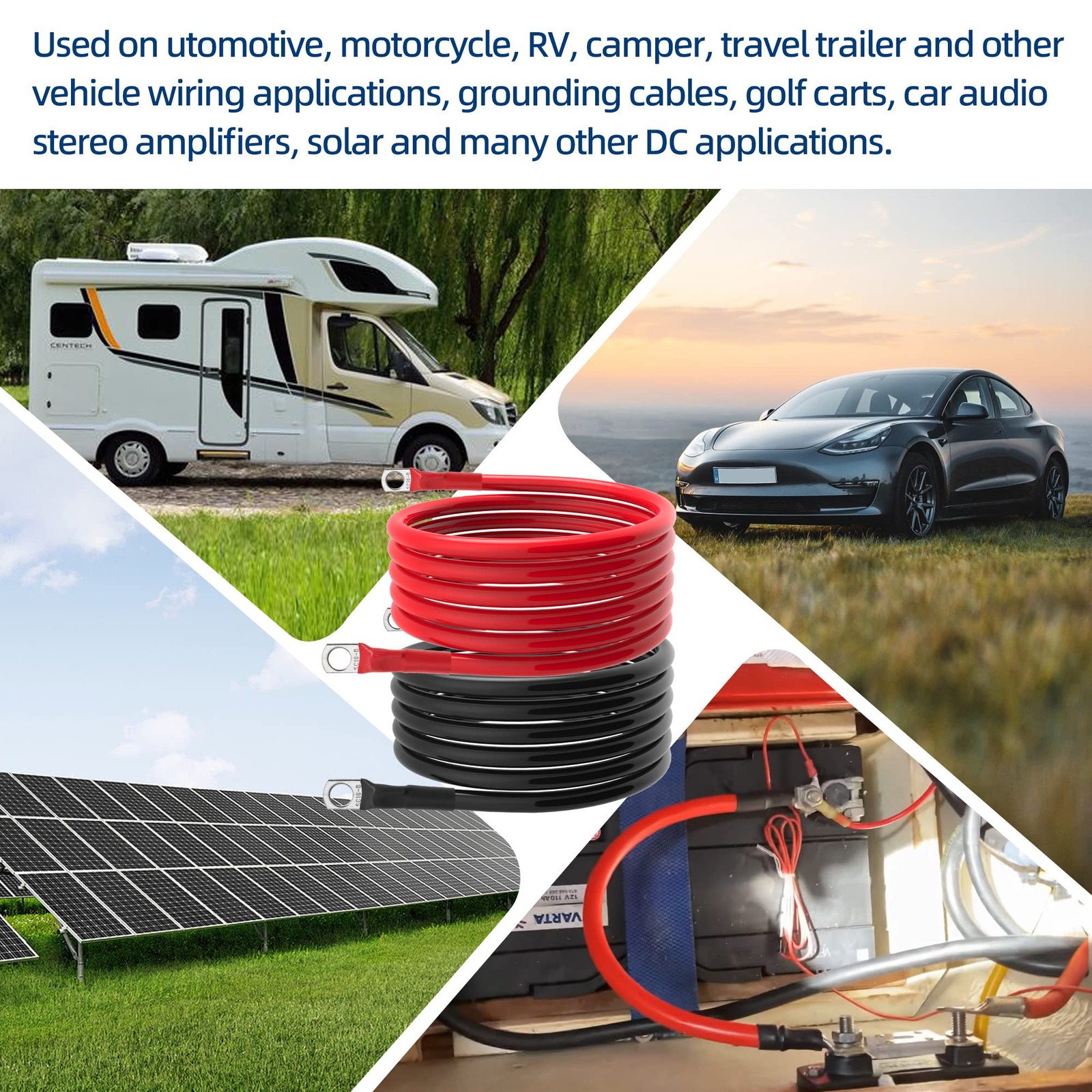 6 AWG Battery Cable 6 Gauge Battery Wires with 5/16 terminals Power Inverter ...