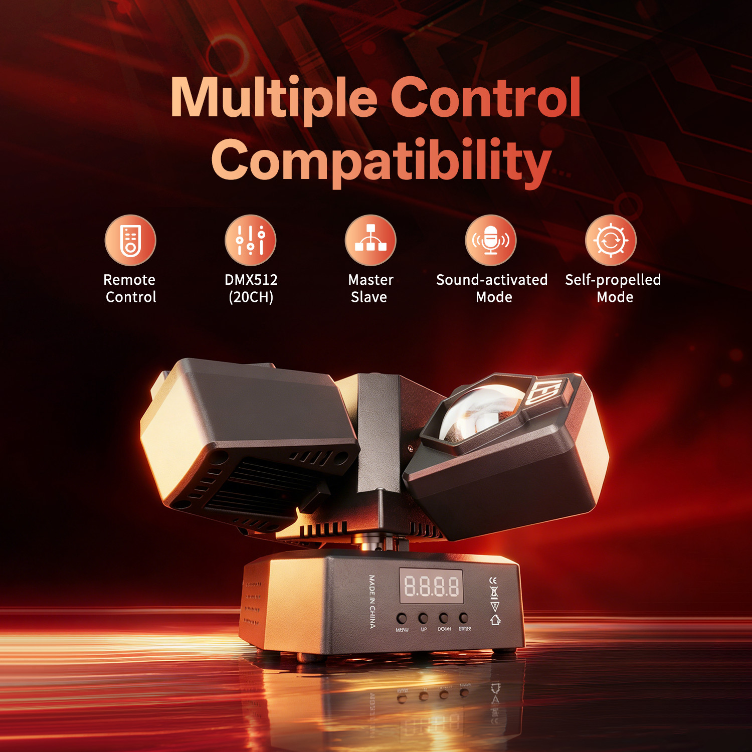 Operating modes: Auto-running, voice-activated, master-slave, remote control