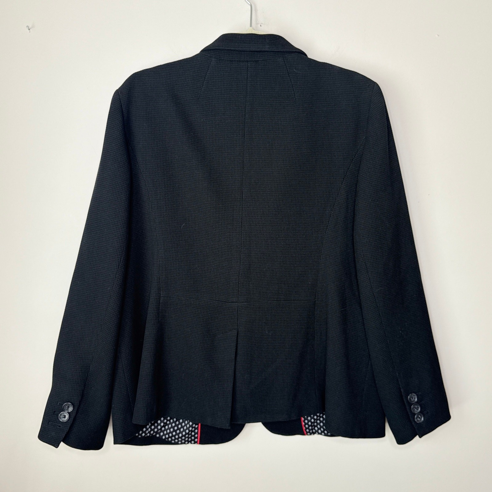 Talbots Size 16 Aberdeen Pique Knit Blazer Black Diamond Pattern Lining Plus