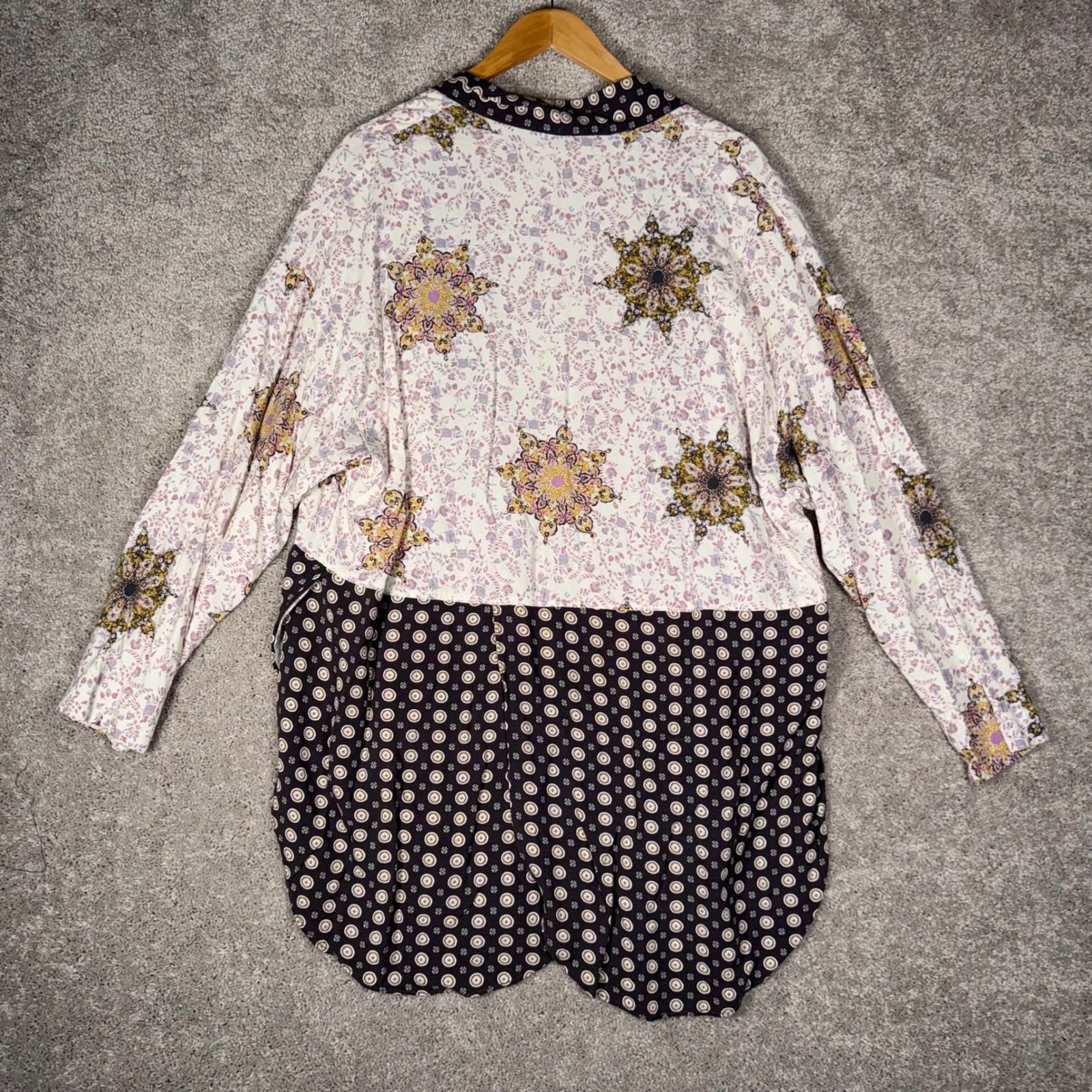 Free People Medium Mixed Floral Medallion Kimono Cardigan Black White Purple