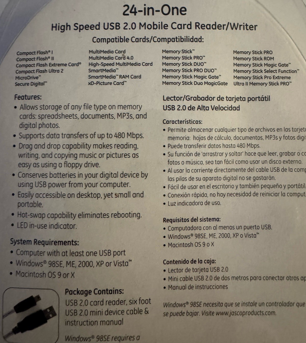 General Electric GE High Speed USB 2.0 24-in-1 Card Reader/Writer NEW SEALED