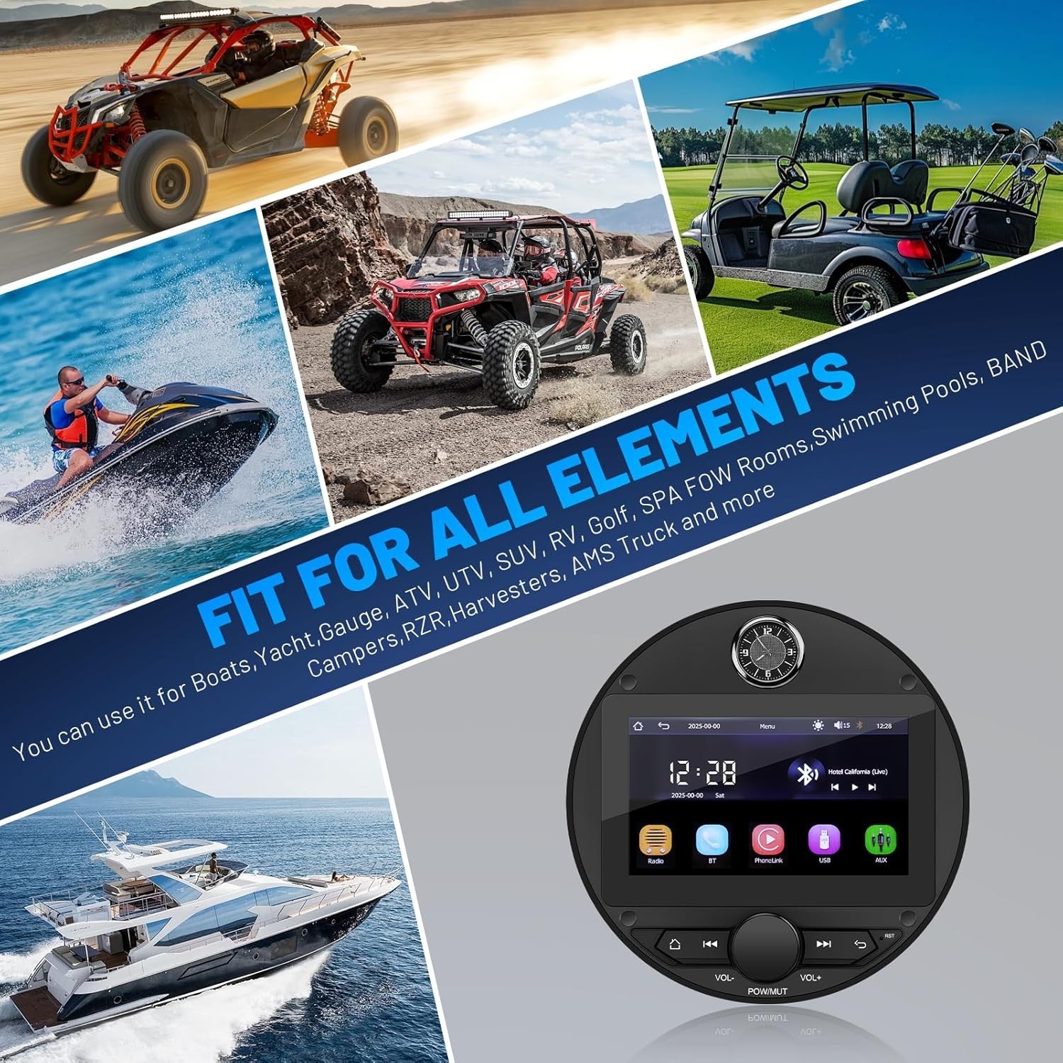 Marine Stereo 7'' Wireless CarPlay and Android Auto Player for ATV, Boat BZR