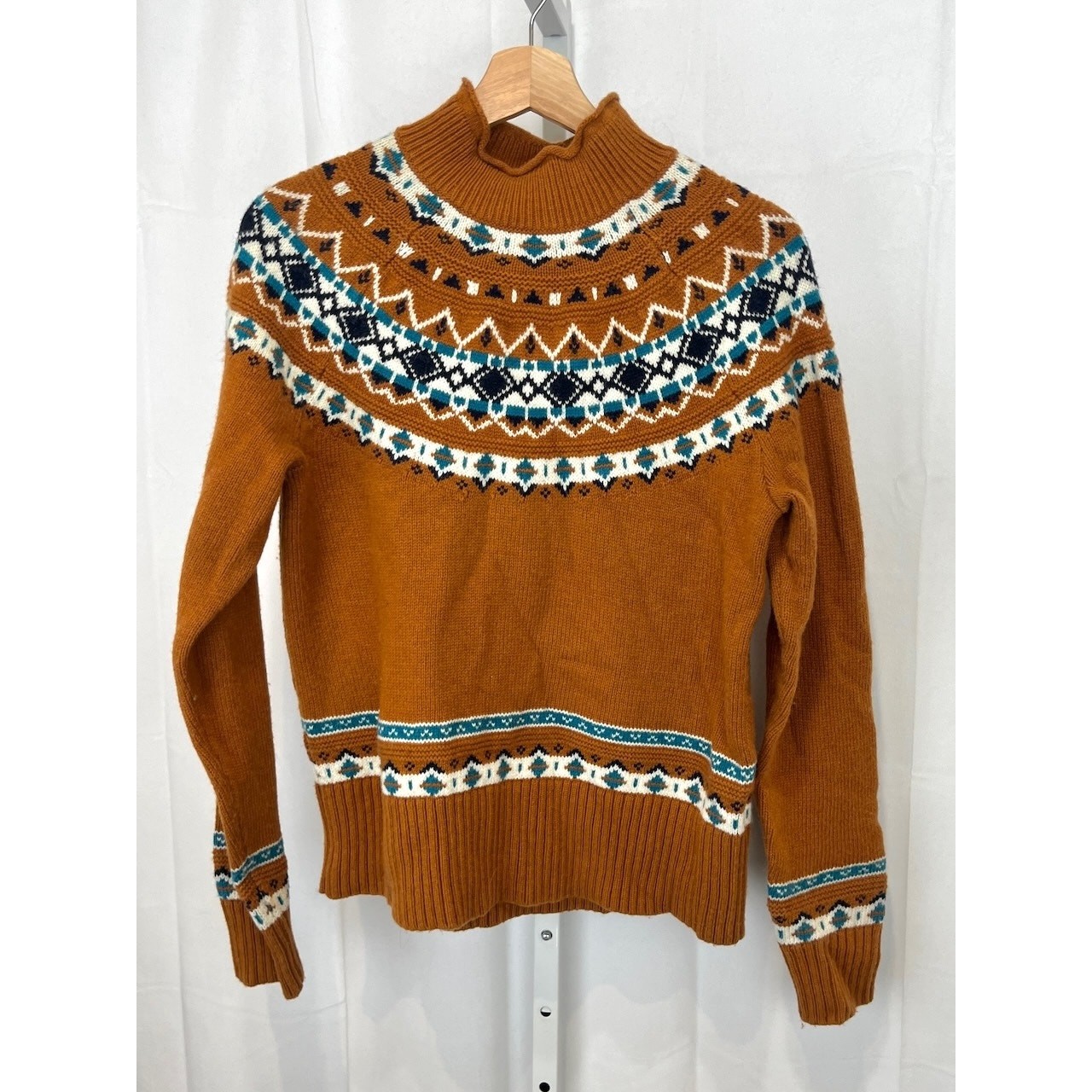 как выглядит NWT J.CREW Fair Isle Rollneck Sweater AF011 Pullover Wool Blend Orange Multi M фото