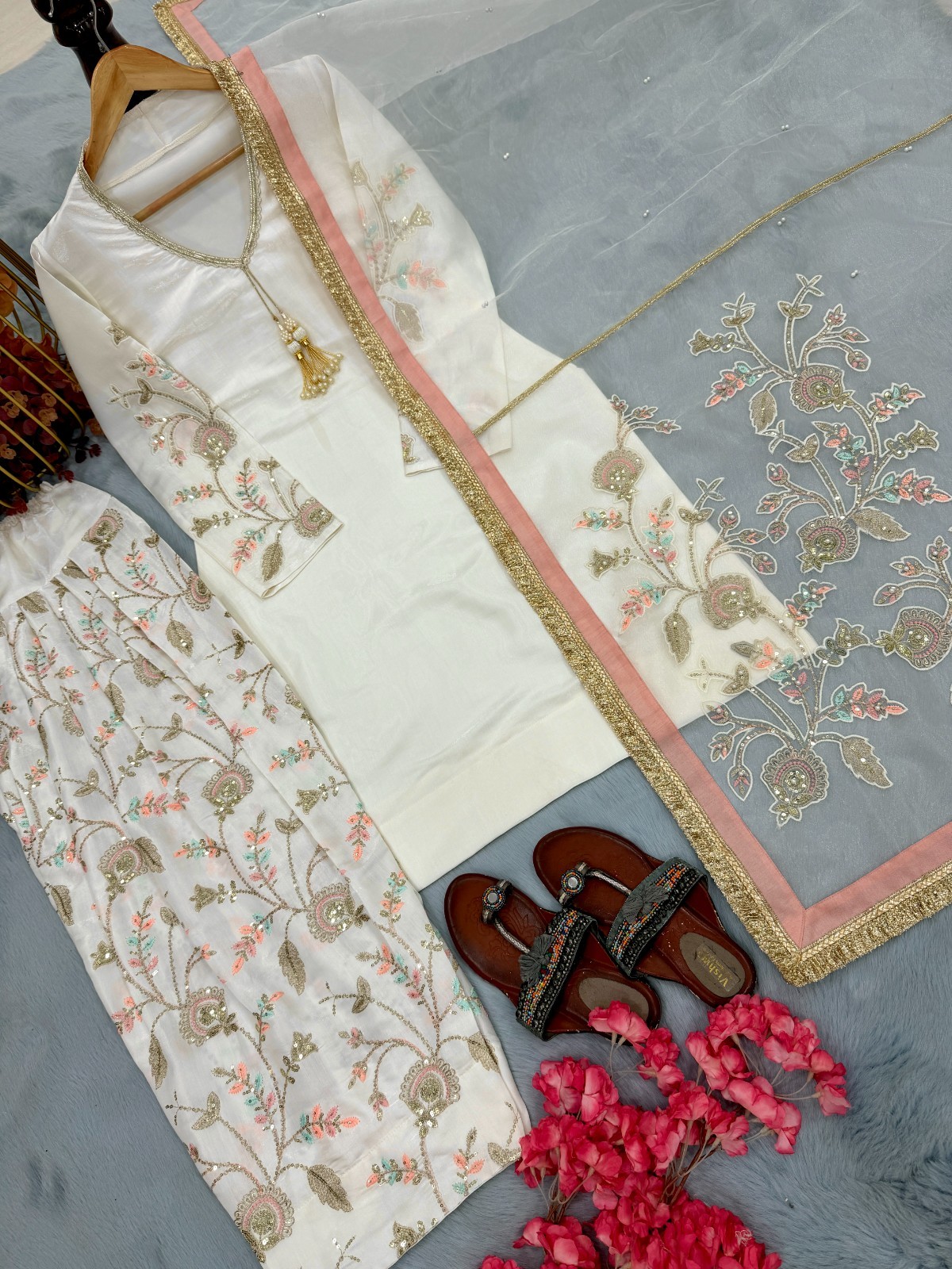 Dupatta Fabric: Pur Soft Organza Sillk With Embroidery 3 mm Sequence Work With Ri