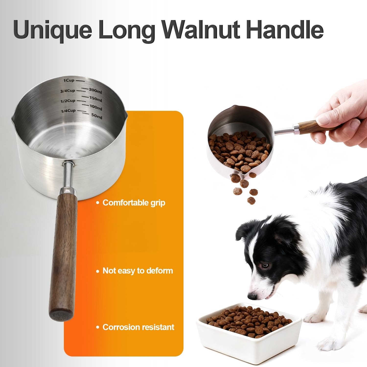 Dog-Cat Food Scoop 1 Cup 304 Stainless Steel Measuring Cup with Long Walnut...