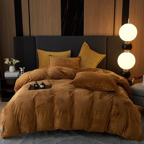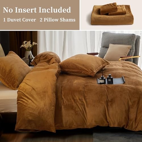 Super Soft Velvet Duvet Cover Size, 3pcs Luxurious King Camel No Comforter
