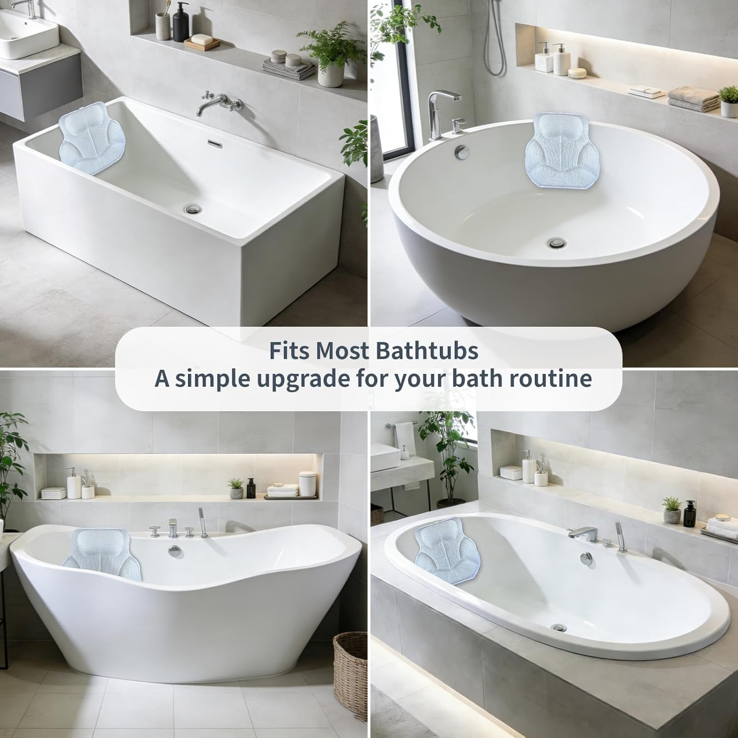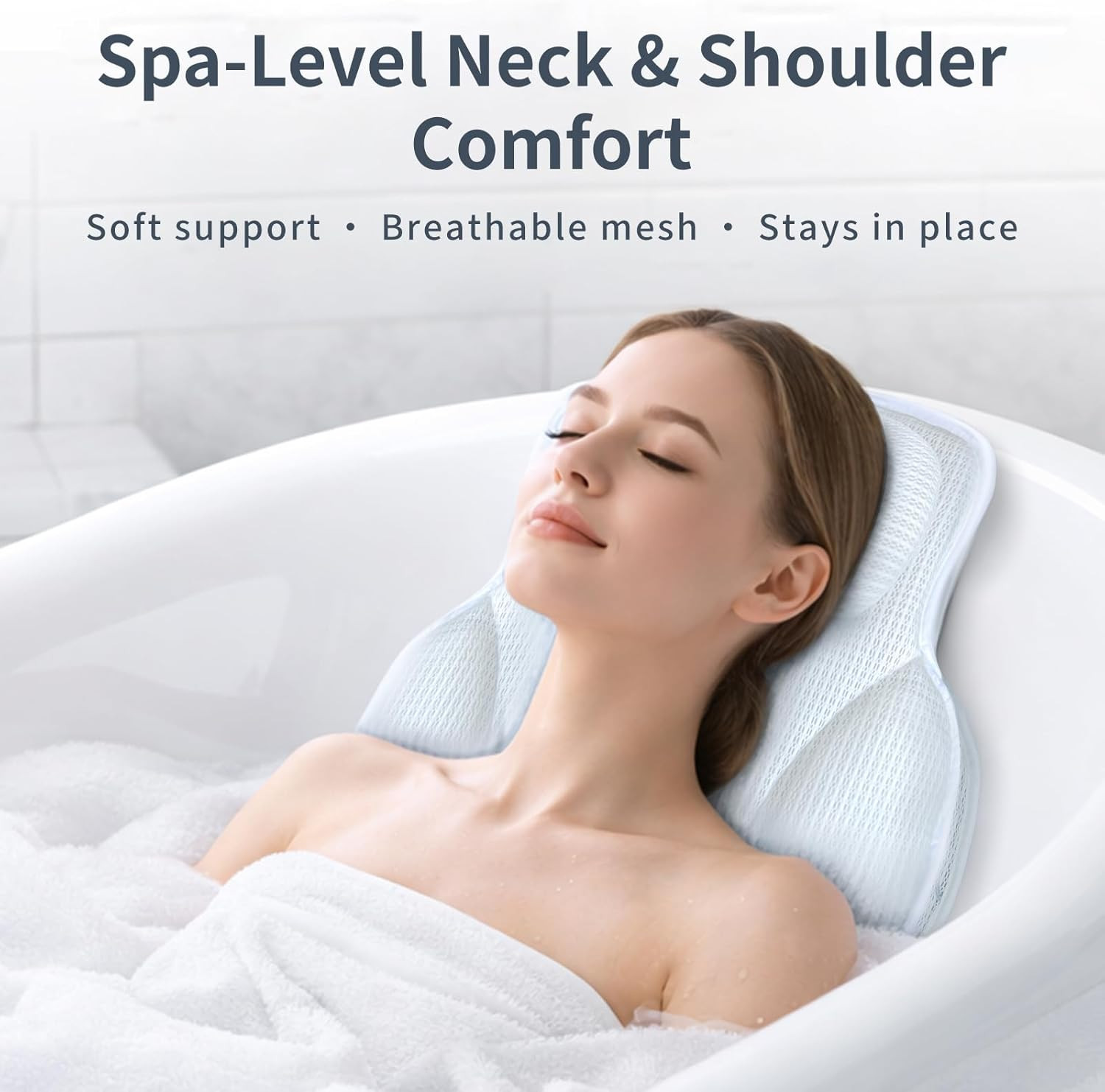 Luxury Bath Pillows for Tub with 4D Mesh Fabric - Thick and Soft Ergonomic Head