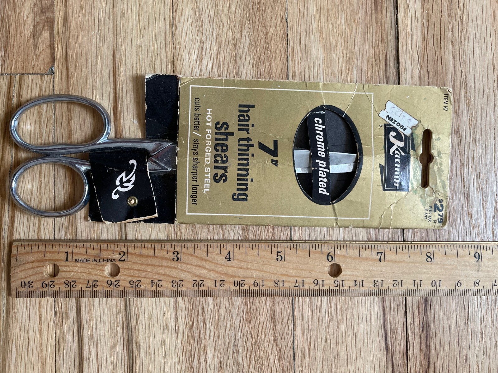 Vintage New Karmin Scissors Barber Hair Thinning Shears - Italy 7" Chrome