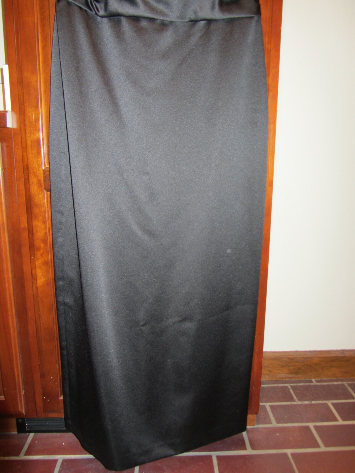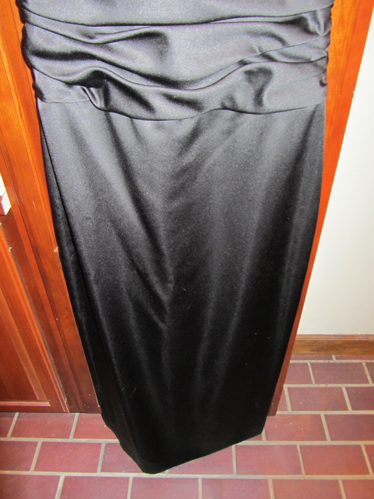 как выглядит Davids Bridal SIZE 14 Black Sleeveless Satin Slit Ruched Waist NEW WITH TAGS фото