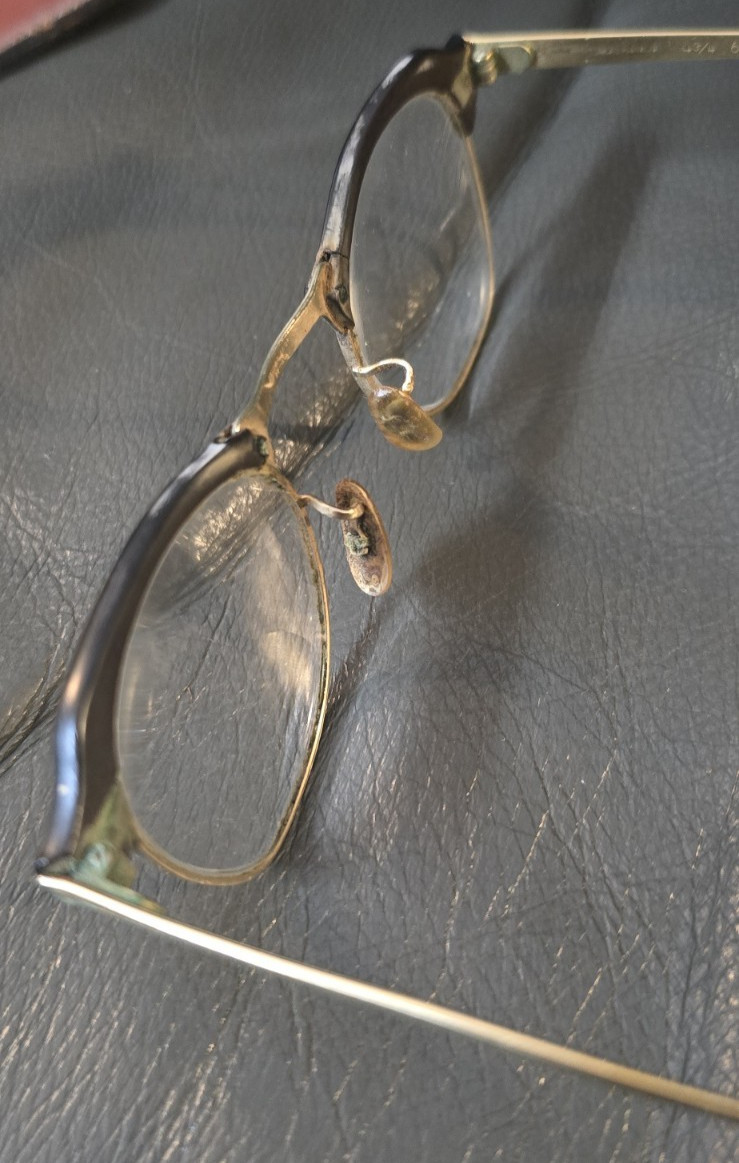 как выглядит Antique BL Bausch Lomb Eyeglasses Frame Arms 12k gf Rim 22-44 Browline фото