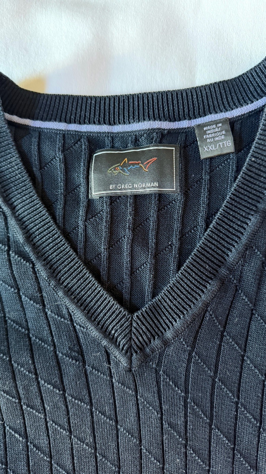 как выглядит Greg Norman Shark Sweater Vest Mens XXL Tall Black V-Neck Golf фото