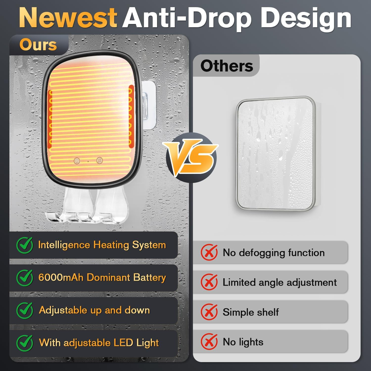 Anti-Fog Shower Mirror for Shaving - Rechargeable Lighted Fogless Mirror with Ad