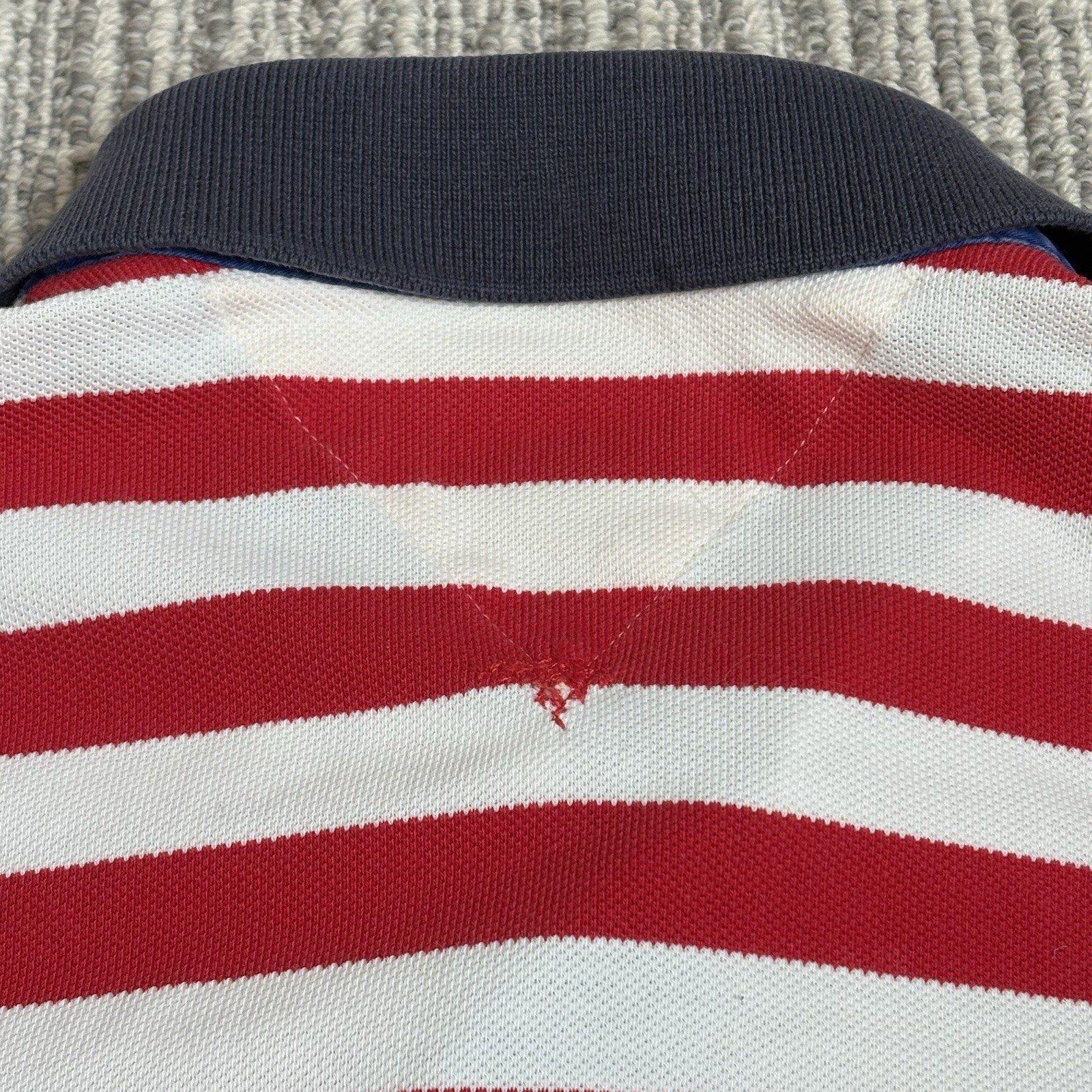 как выглядит Vintage 90s Tommy Hilfiger Red White Striped Cotton Pique Polo Shirt - Mens M фото