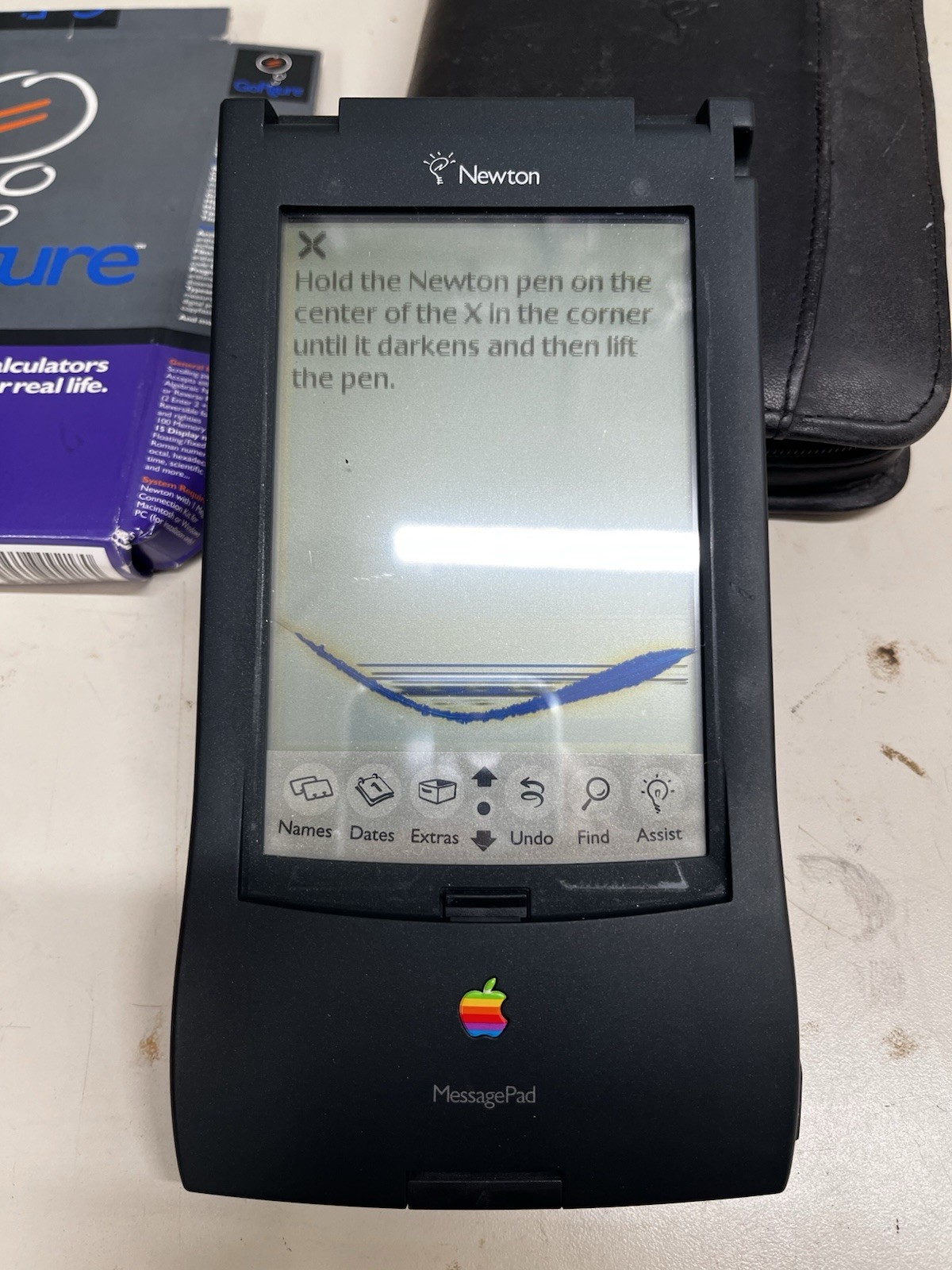 Vintage Apple Newton 110 MessagePad Tablet - Cracked Screen, Tested w/ Extras