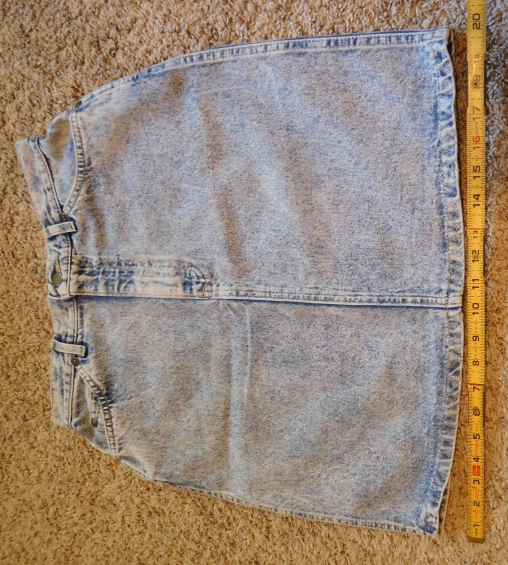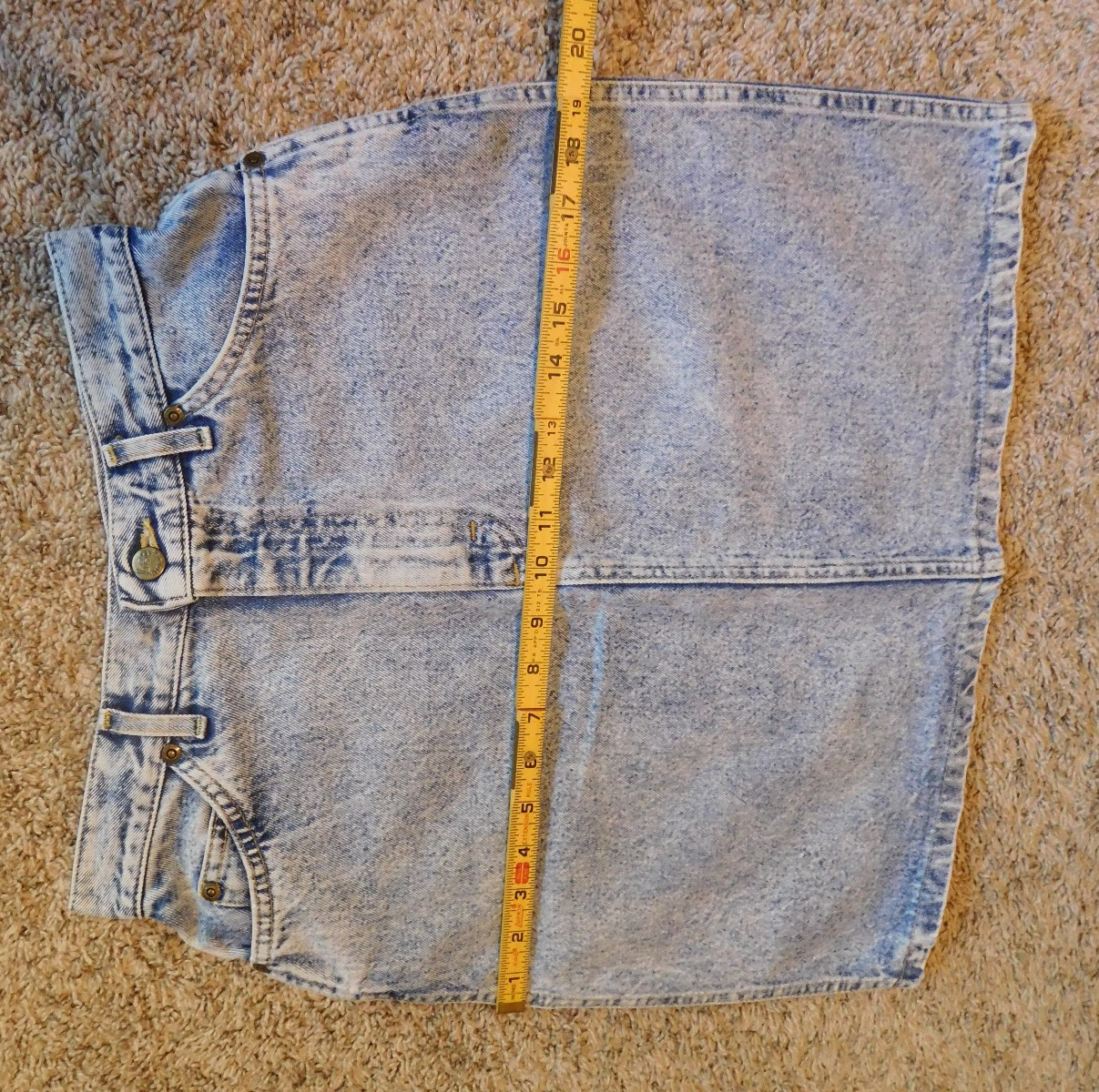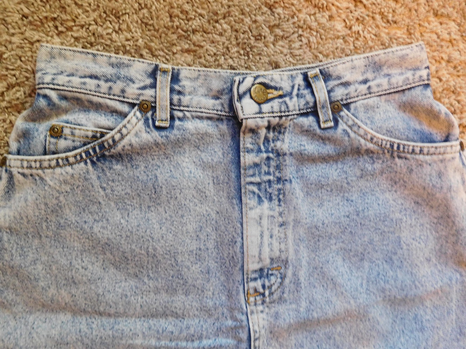 как выглядит Vintage 80s Acid Wash Lee Riders Riveted 5 Pockets Cotton Denim Mini Skirt Sz 9 фото