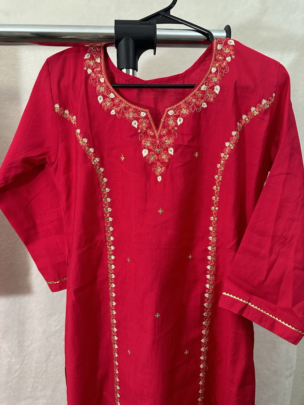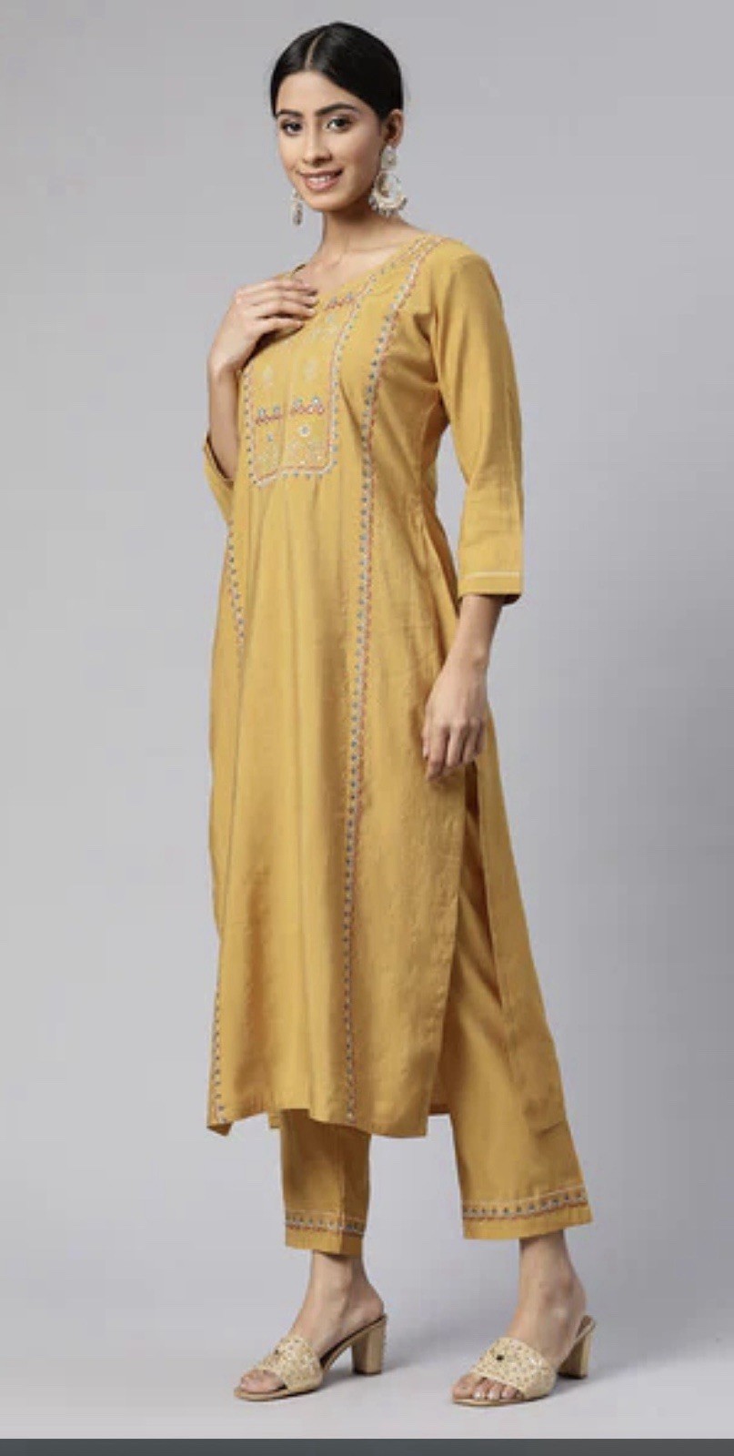 Indian designer Wear 3/4 Sleeve Silk Blend Embroidered Kurta With Trousers