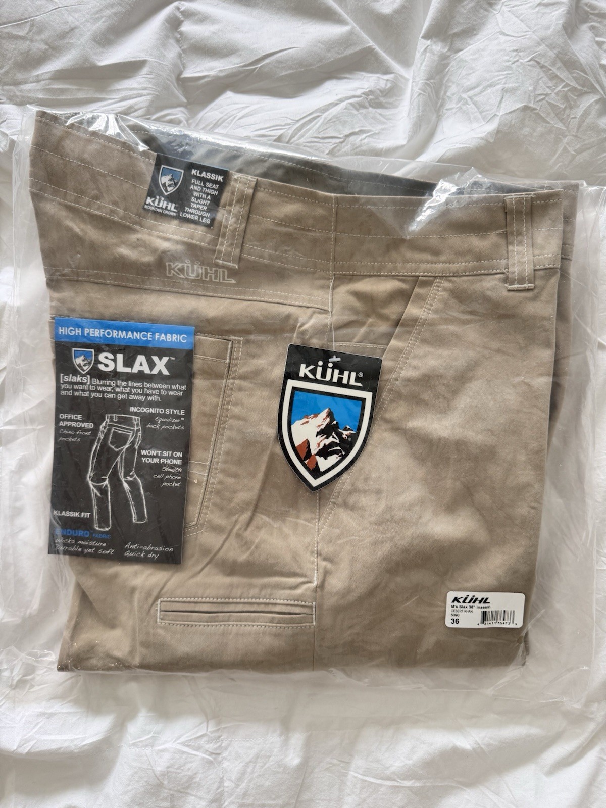 KUHL Slax Mens 36x36 Tan Khaki Klassik Pant Slacks..NEW