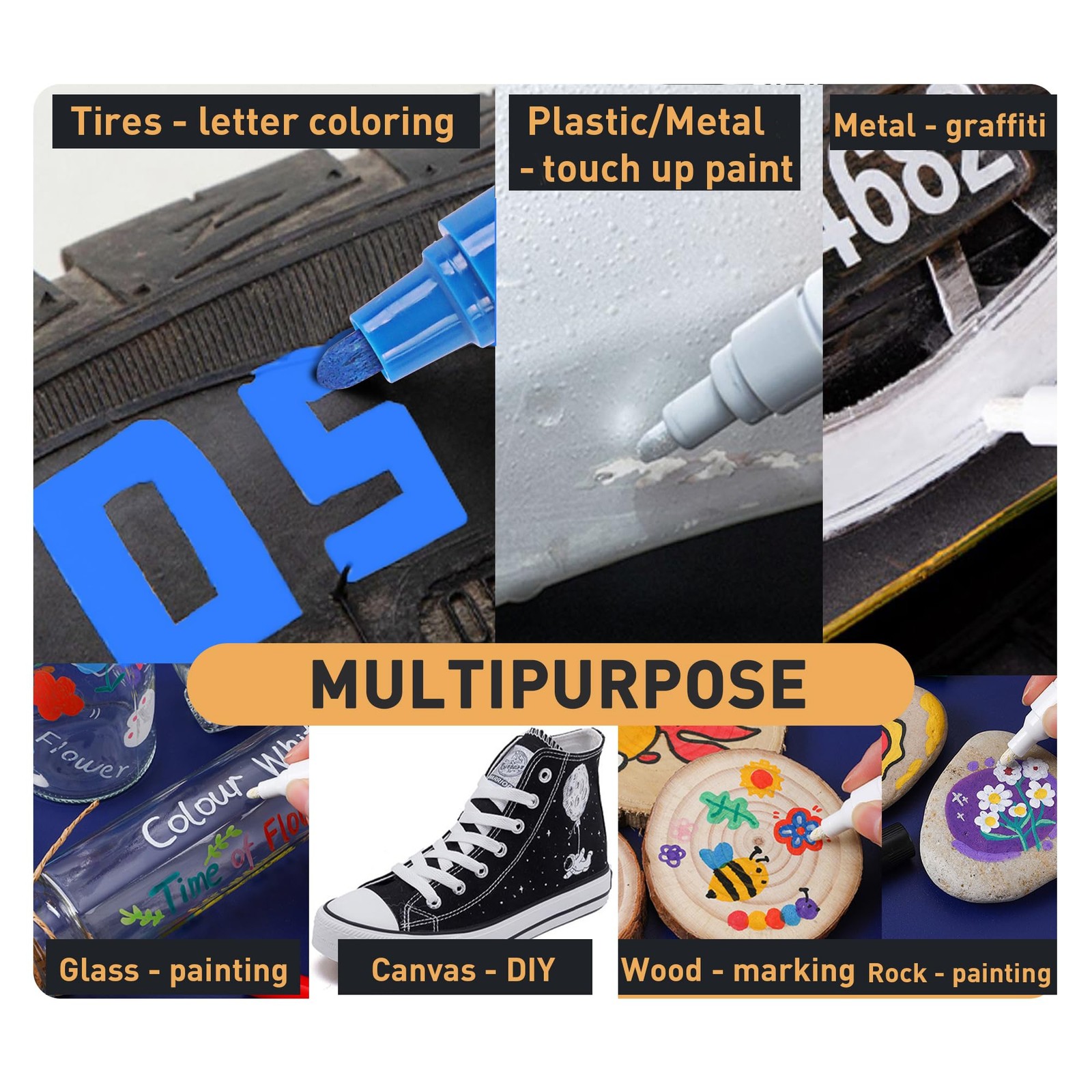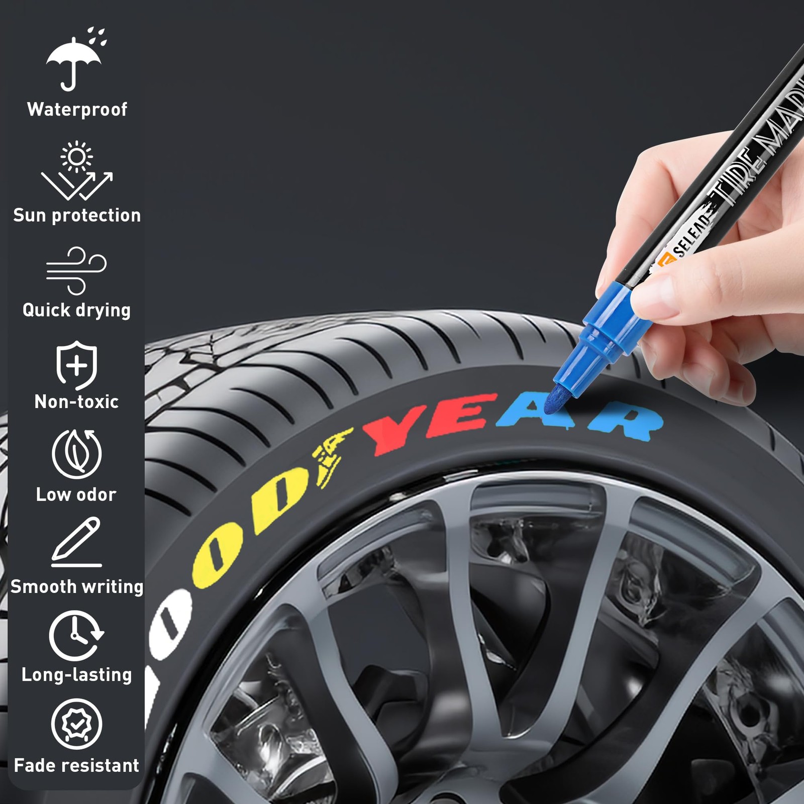 SELEAD Tire Marker White Red Yellow Blue - 8 Pack Paint Pens for Car Tires Le...