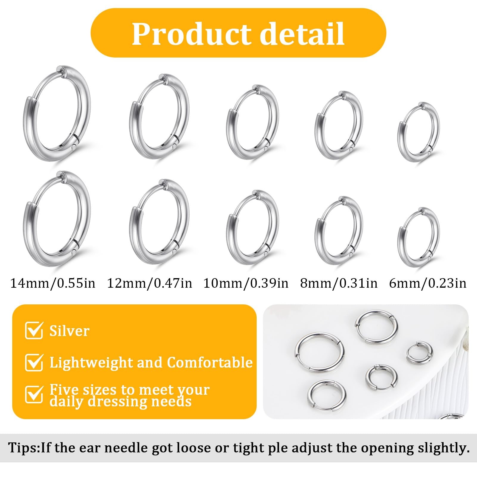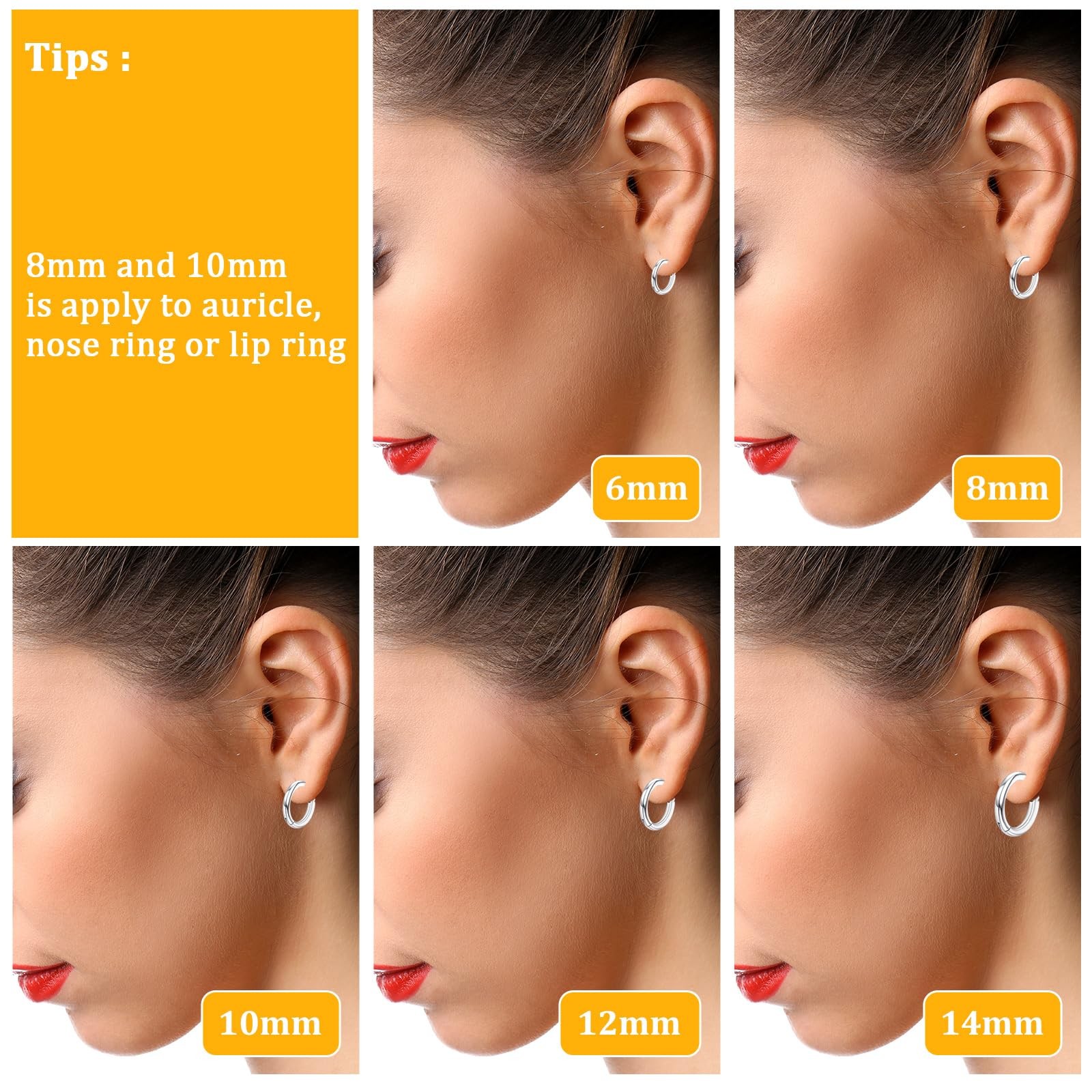 Nogeqi 5 Pairs Stainless Steel Hoop Earrings for Women Men, 316 Small, Silver