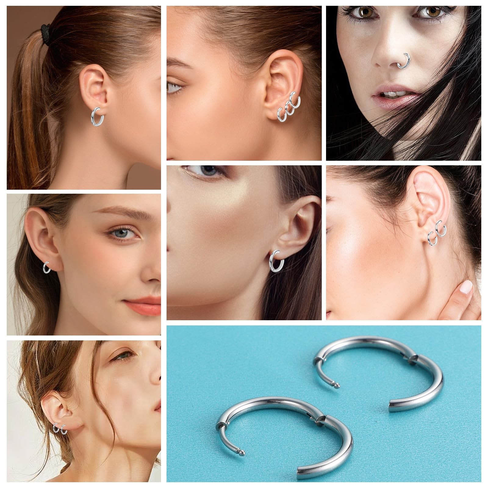 как выглядит Nogeqi 5 Pairs Stainless Steel Hoop Earrings for Women Men, 316 Small, Silver фото