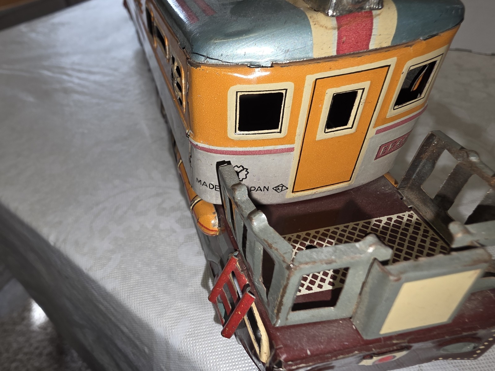 Vintage 1950s Central Railway Electric Locomotive Tin Friction Toy Train Japan