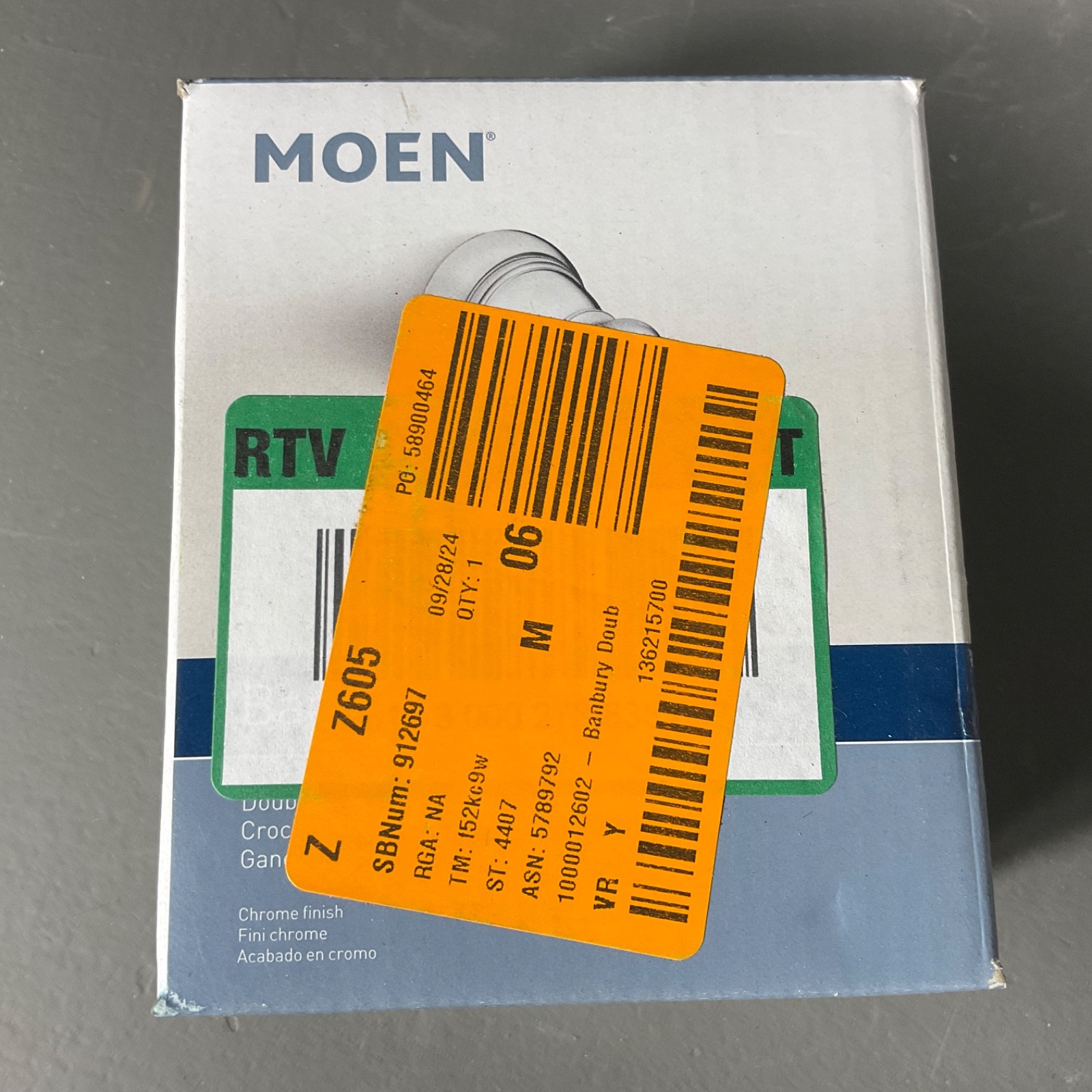 MOEN Banbury Chrome Finish Double Robe Towel Hook Bathroom Shower - Y2603CH