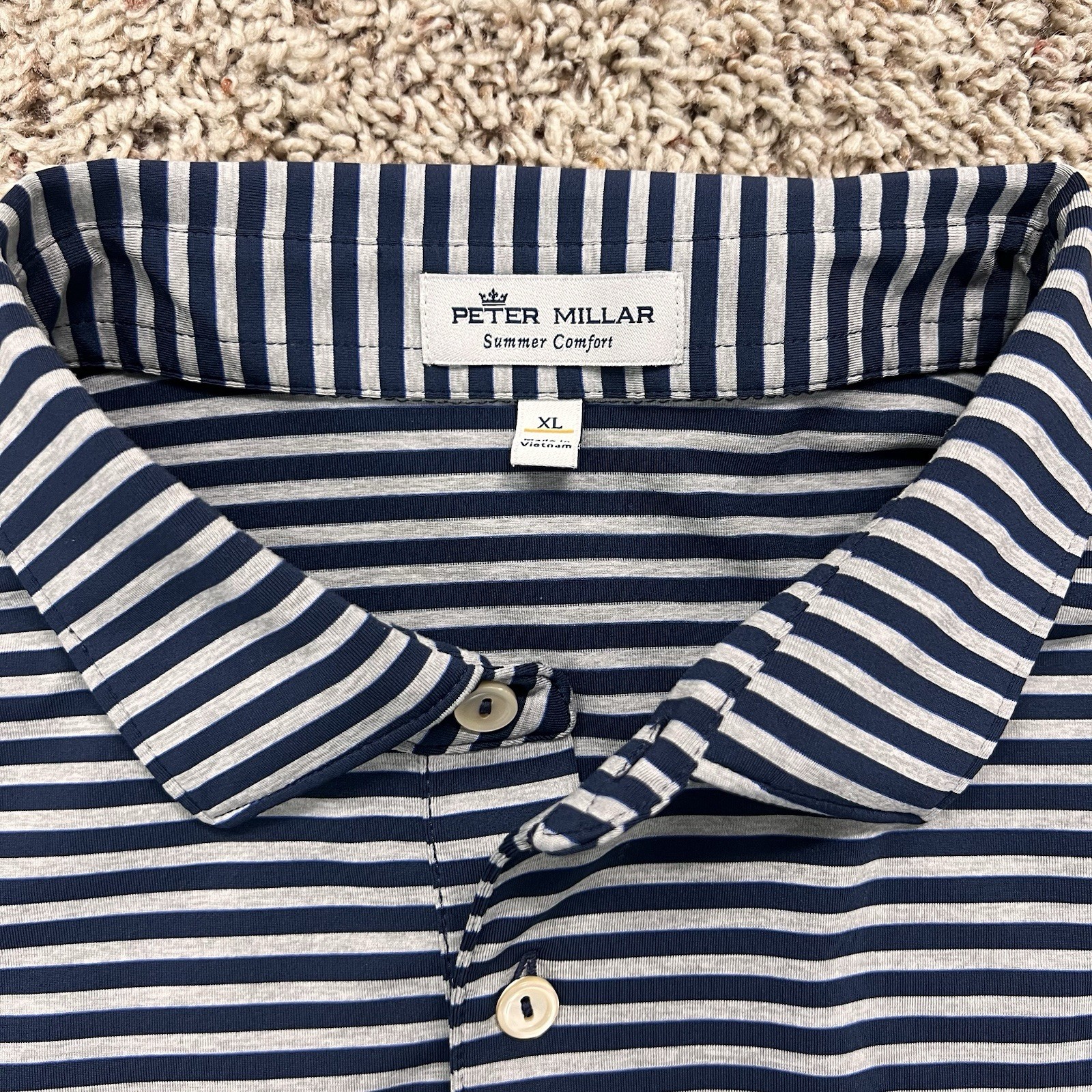 Peter Millar Summer Comfort Polo Men s XL Striped Blue/White Short Sleeve Golf