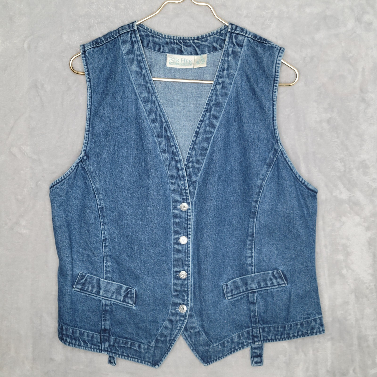 как выглядит Vintage Medium Wash Denim Vest Size XL Western Country Cotton Cottage Prairie фото