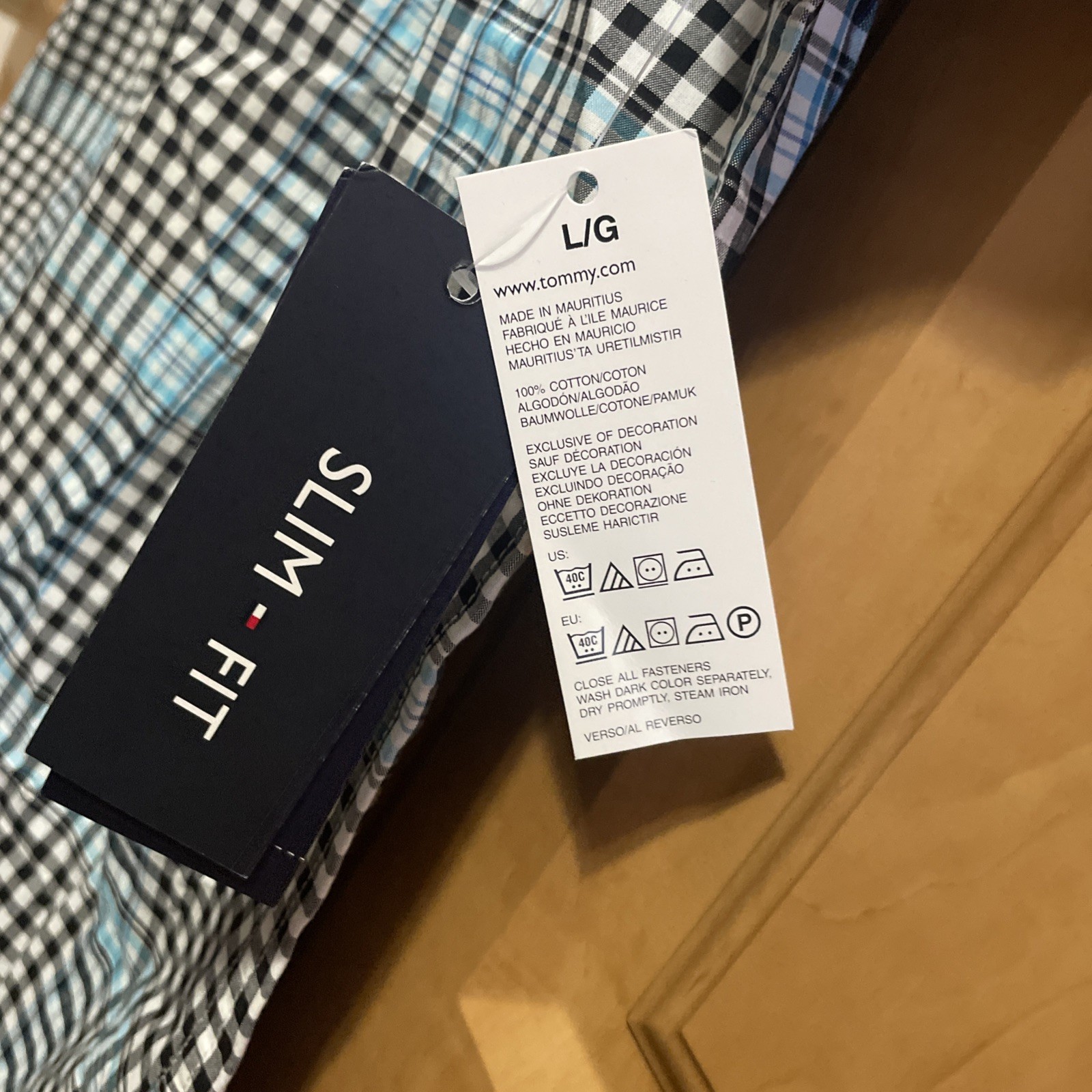 как выглядит Tommy Hilfiger Slim Fit Plaid Short-Sleeve Modern Prep Button Down Shirt Size L фото