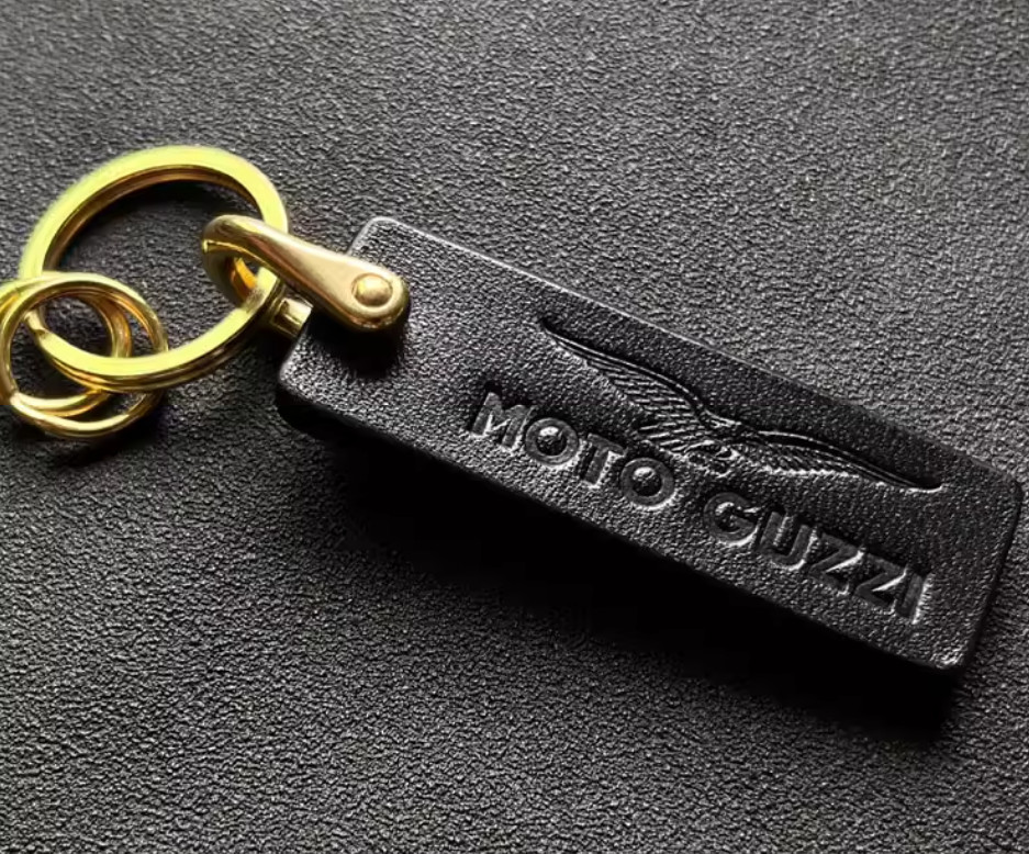 Moto Guzzi Handcrafted Racing Motorcycle Genuine Leather Logo Keychain Keyring