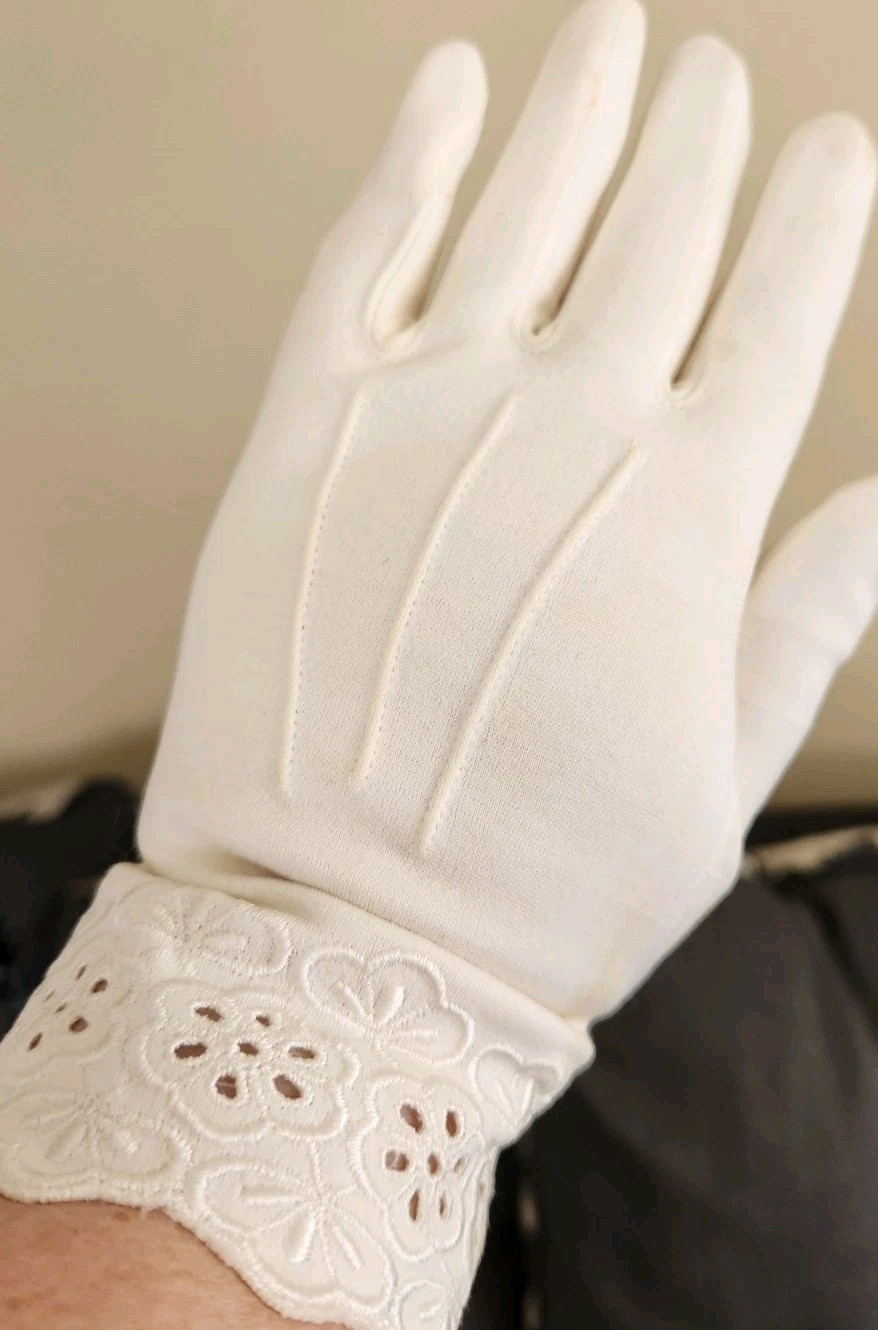 как выглядит Vintage Ladies Girls Formal Ivory Gloves Wedding Easter Prom Embroidered Cuff фото