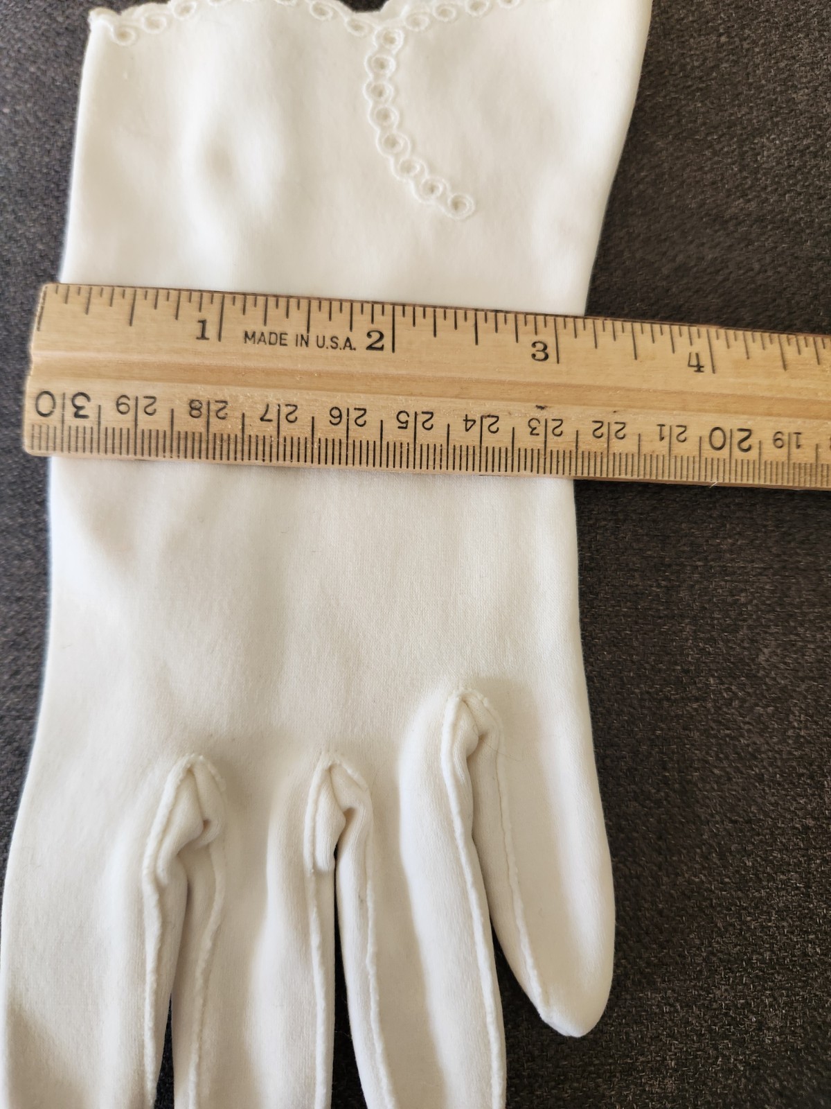 Vtg Ivory Gloves Small, Retro Feminine Wedding Prom Scalloped Wrist Embroidery