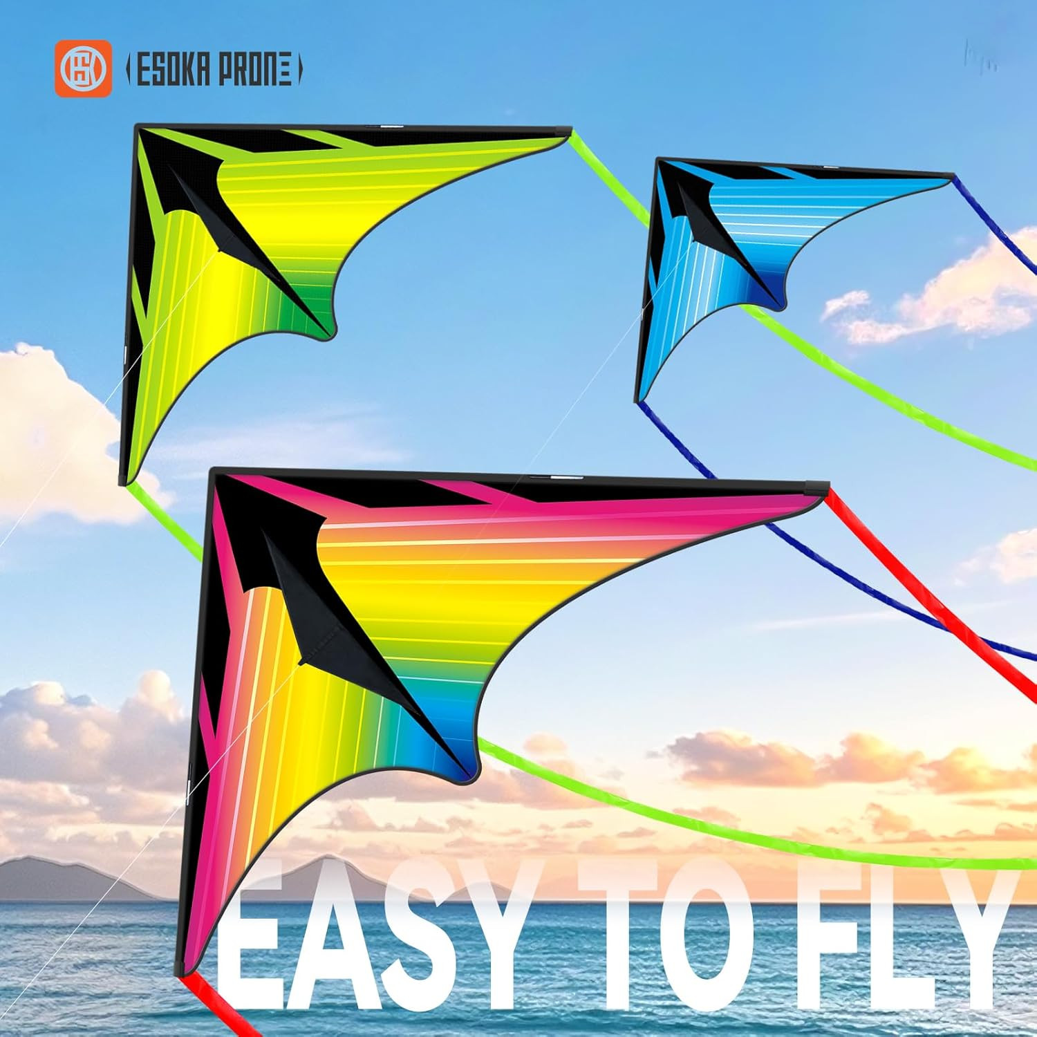 3 Piece Set Delta Kites for Kids Adults,Easy to Fly Kite with Classic Triangle