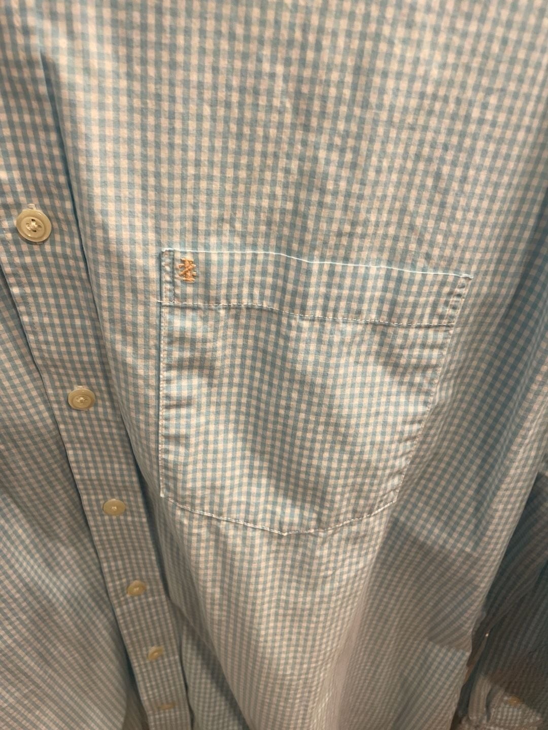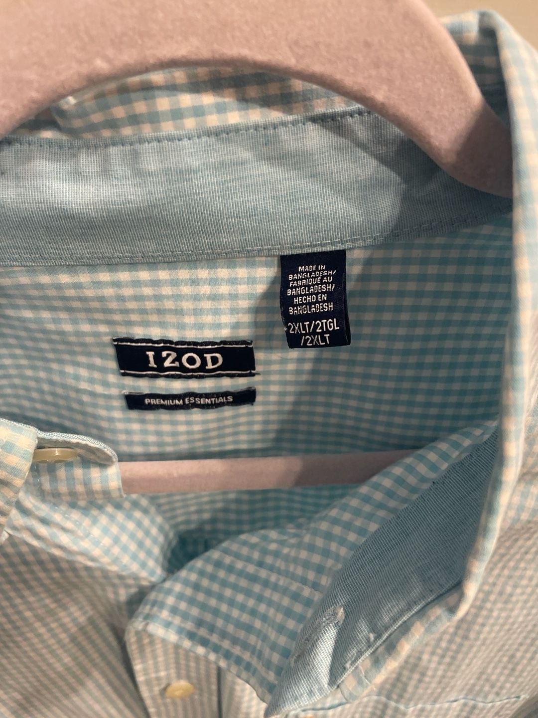 как выглядит IZOD Premium Essentials Mens Big Tall 2XLT Gingham Button Down Shirt Aqua Blu фото