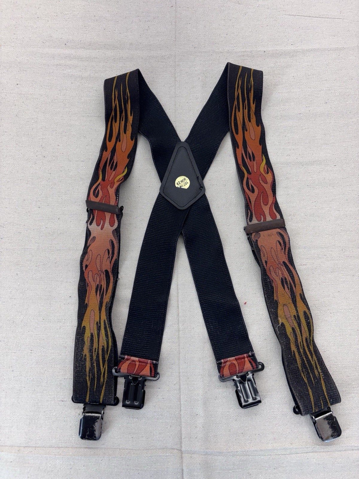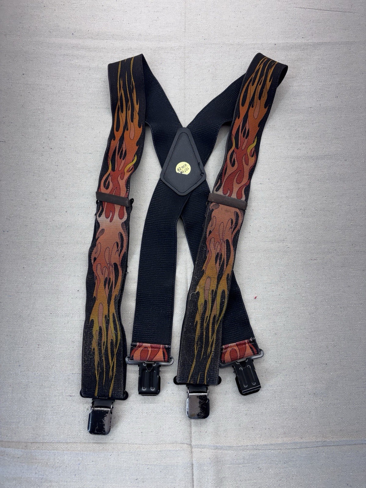 как выглядит Suspenderstore.com Red Flames In Black Orange Size 42 Adjustable Suspenders фото
